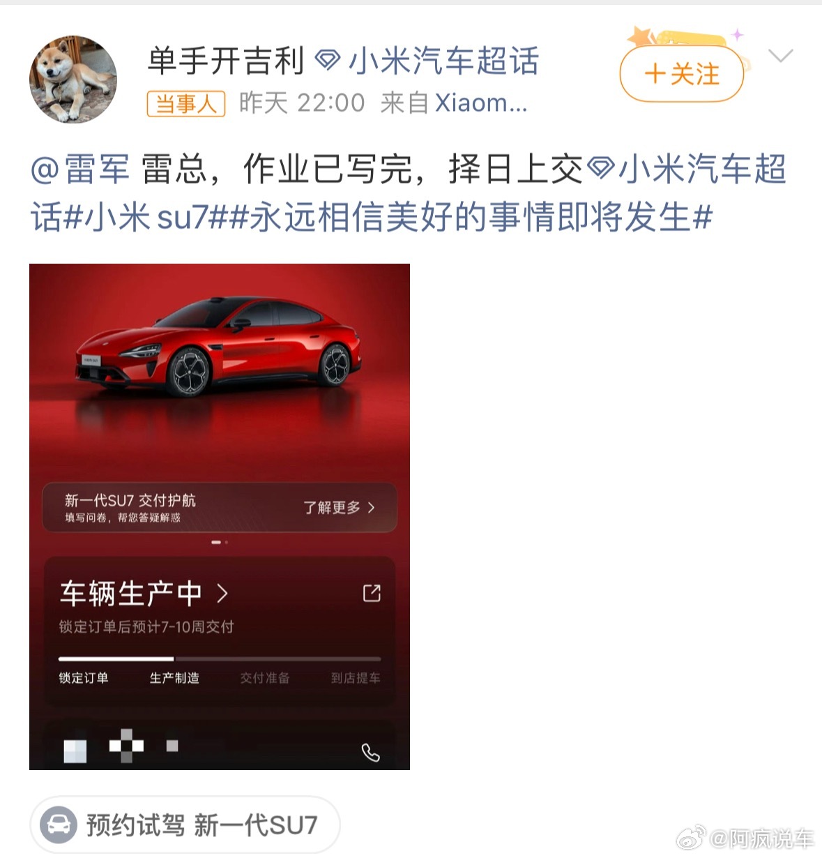 大家还记得前两天“雷军一句回复=一辆小米SU7”这事儿吗?