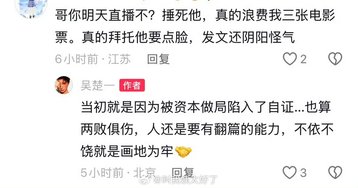 吴楚一现在的心态和之前出来锤陈牧驰的时候天差地别,现在:“要有翻篇的能力”、“有