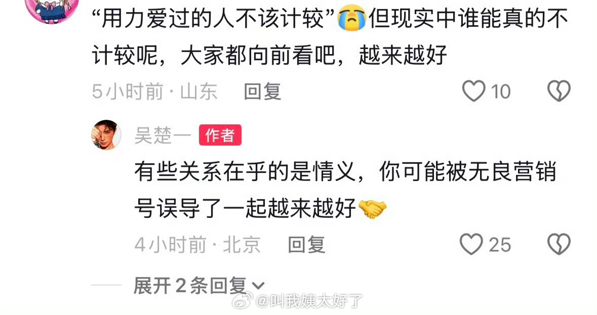 吴楚一现在的心态和之前出来锤陈牧驰的时候天差地别,现在:“要有翻篇的能力”、“有些关系在乎的是情义”、“过去是因为键盘侠导致一系列”