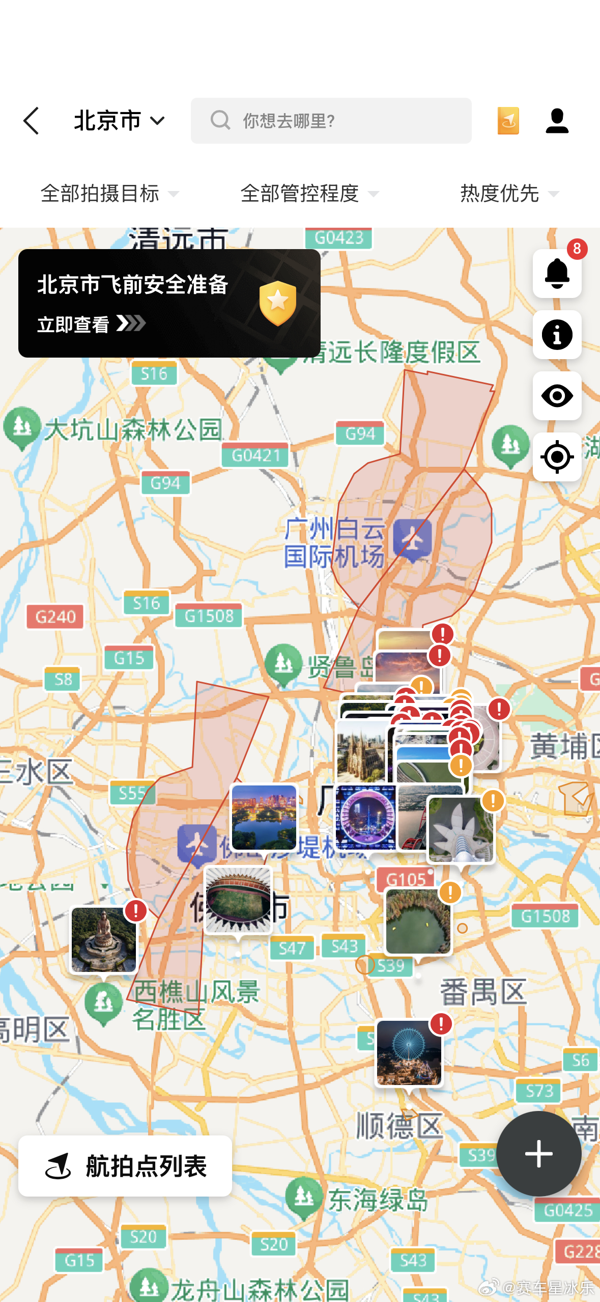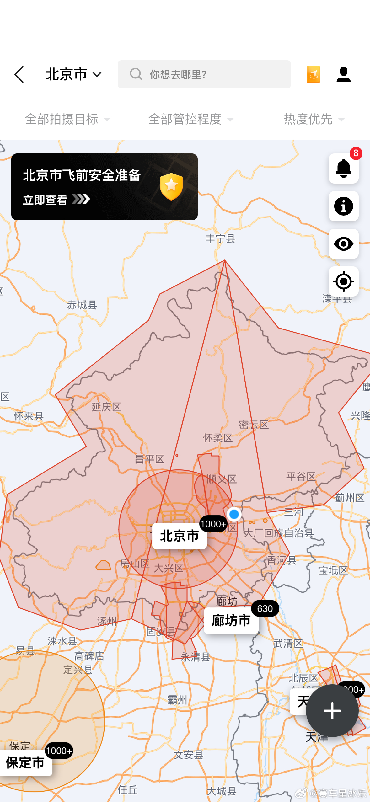 上海,广州,深圳的禁飞区进本都是机场区域。北京是市区郊区全禁飞,禁售,禁运输。问题在于,如果需要航拍个车就要出北京,但是回来的话,又要检查运输回北京的事。不过好处是北京郊区群众也不怕被无人机砸到了。