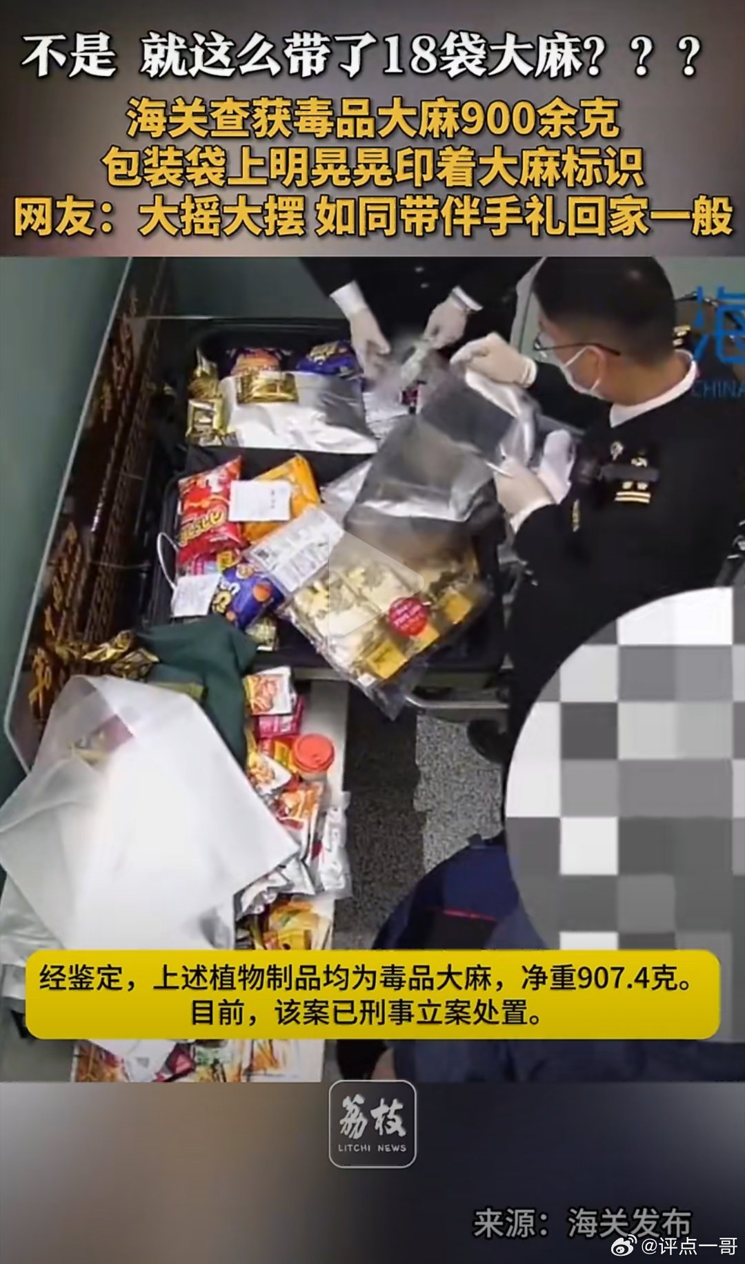 光天化日携带毒品入境,包装还明目张胆印上大麻标识,堪称嚣张至极。我国对毒品零容忍,任何侥幸心理都逃不过海关监管,等待这名旅客的必将是法律的严惩。带18袋毒品入境包装上印大麻标识