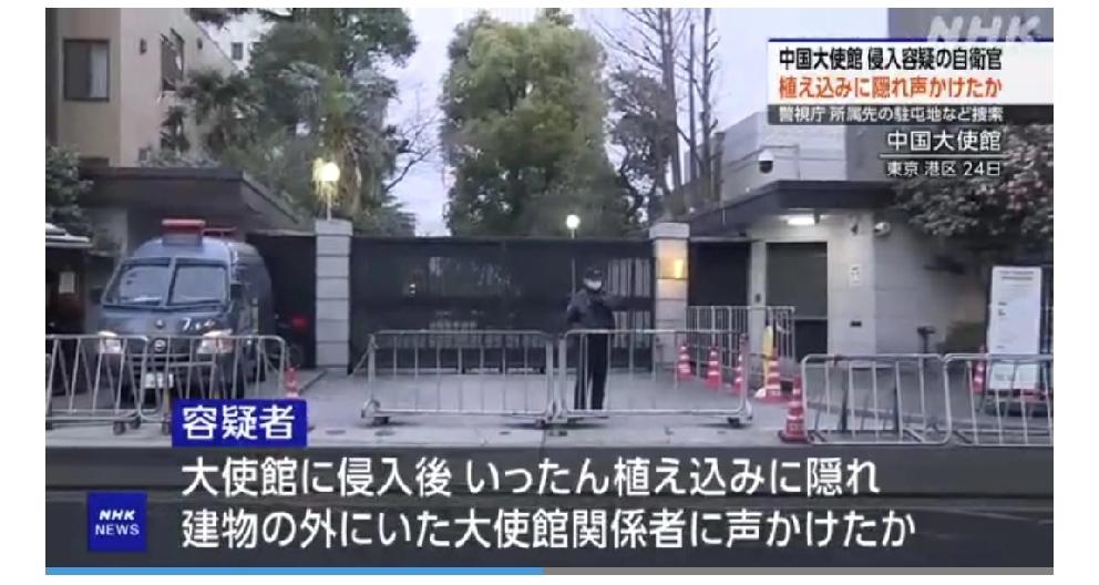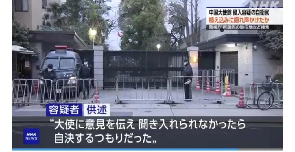日方为涉嫌闯入中国大使馆被捕的自卫队官无理辩护 北京时间日媒3月29日上午10点52分报道,3月,一名23岁的陆上自卫官因涉嫌闯入位于东京港区的中国大使馆内被捕,自卫官闯入后藏匿在建筑内的树丛中。通过对搜查相关人员的采访得知,似乎是他自己向人搭话。29日,警视厅对其工作地点的驻扎地进行了搜查,正在调查详细经过。 隶属宫崎县陆上自卫队驻扎地的自卫官村田晃大(23岁)是三等陆尉,他因他于本月24日闯入位于东京港区的中国大使馆内而受到指控。他因涉嫌闯入被捕。 据称,他在事发前一天离开驻扎地前往东京,面对调查,他承认了嫌疑,并供述称“本想与大使见面,告诉他不要对日本发表强硬言论”。 29日上午,警视厅对嫌疑人工作的驻地等多个相关地点进行了搜查。 在随后的调查中,通过对相关人员的采访了解到,嫌疑人闯入大使馆后,曾一度藏在建筑地内的树丛中,并自己向在大楼外的大使馆相关人员搭话。 在树丛中,发现了疑似嫌疑人带入的刀刃长18厘米的菜刀。 警方表示,嫌疑人在与相关人员交谈时并没有携带菜刀,面对调查,嫌疑人供述称“曾向大使转达过意见,如果不听取意见就会自杀”。 以上就是事件的最新报道,非常离谱!至少最邪门的说法是嫌疑犯闯入中国大使馆携带菜刀不是为了杀人,而是准备自杀,如果此说得以成立,那么该嫌疑犯的罪就几乎减轻一大半,日本方面就可以从轻发落了。这是日方的狡猾所在,估计日方一定会照此逻辑去处理该闯入中国大使馆的嫌疑犯。