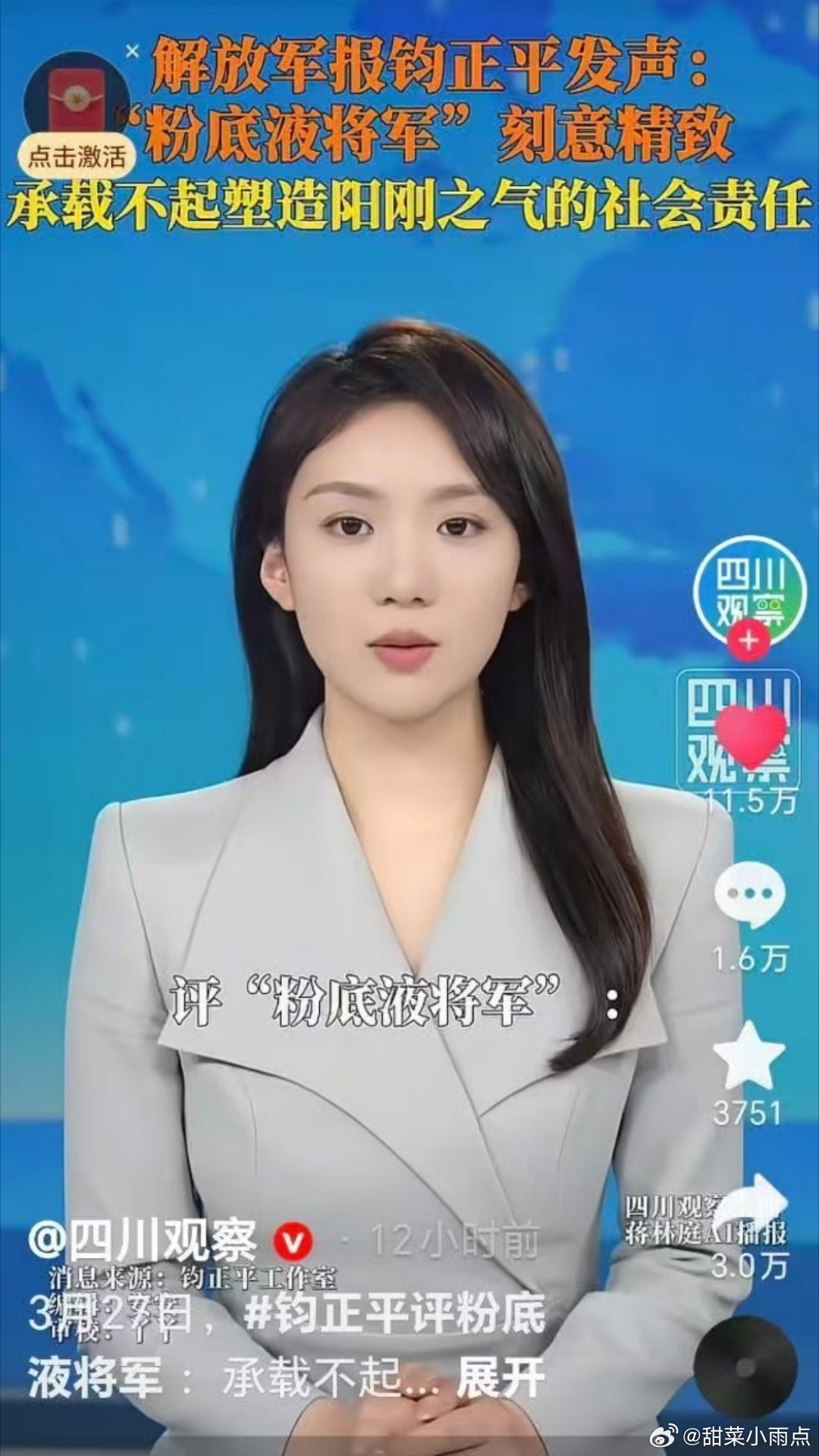 没必要发明粉底液将军这样恶毒的词没懂买这个词条的人是什么心理是真的要走黑红风了?怕没人搭理反复上热搜一直重复“粉底液将军”是不够丢人选择丢个大人?官媒各种点名你是装看不见的,被国外网友嘲讽你说火到国际了,哇塞哇塞!剧能混成这样子前无古人👏