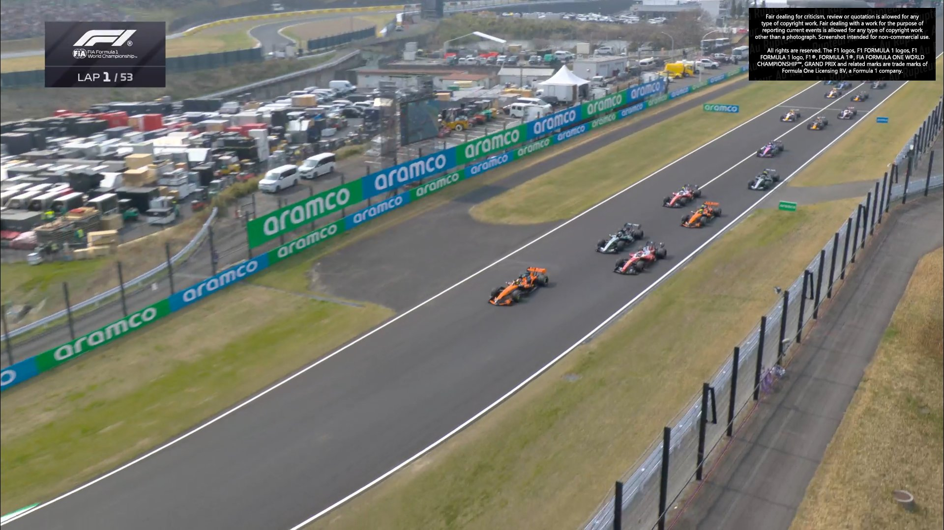 F1 杆位起步的安东内利的起步不理想,掉到了第六位!2026f1日本大奖赛