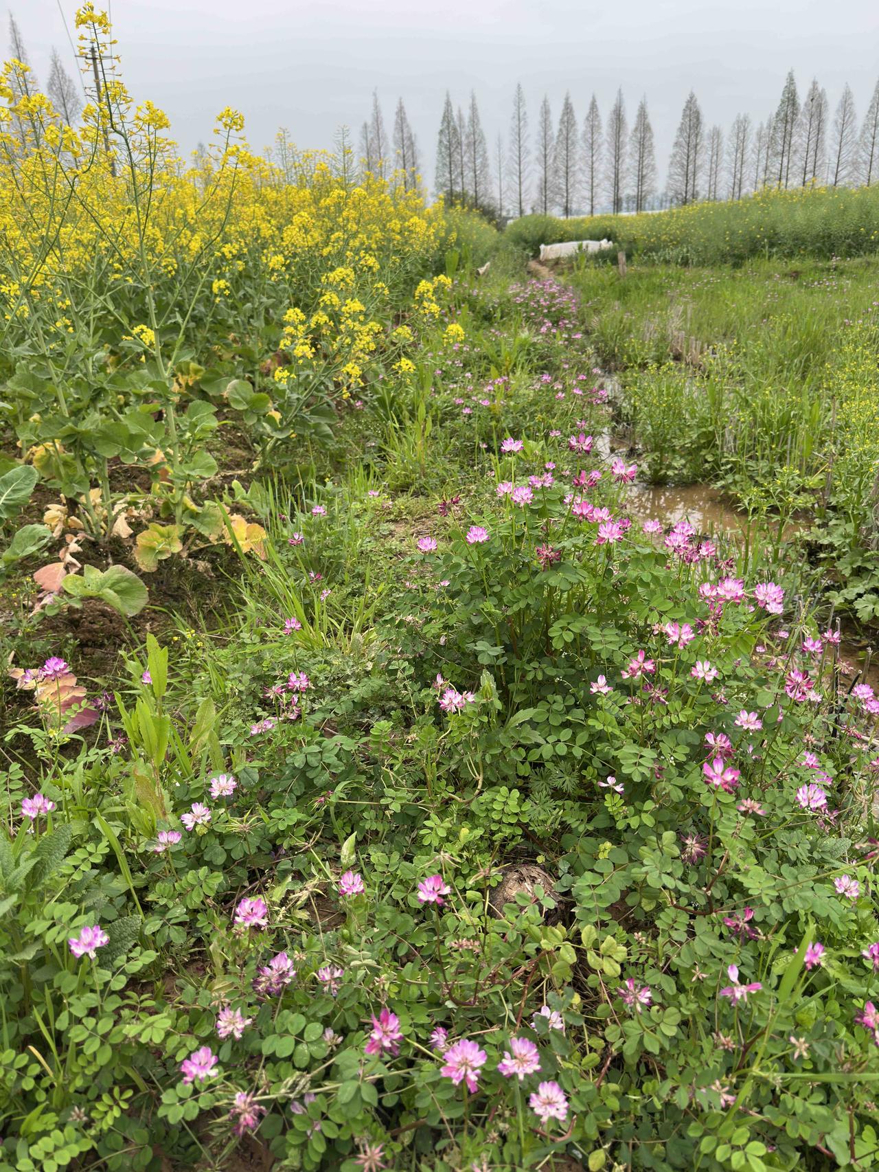 一路往北,骑行10多里路,来到一处田园。 首先映入眼帘的是依山傍水的田园,田里的油菜都结出了淡绿色的的油菜夹,密密麻麻层层叠叠。 走过一条老田埂,田埂上长满了紫云英,紫云英正开花,云英绕脚的感觉很浪漫,停下脚步拍拍图,越看越美。 爬上一处小山坡,池塘边的土坑上,杂草丛生,里面可藏着宝藏——马兰头,这是我此行的最主要目的——剪马兰头。 不知不觉,差不多溜达两个小时了,骑上小电驴,一路向南,回家。