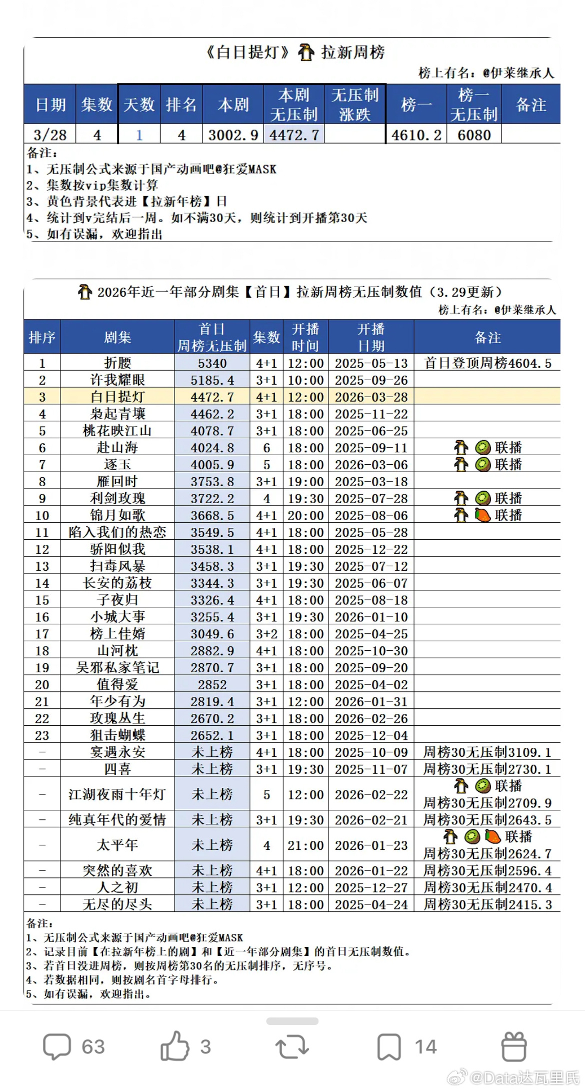 白日提灯首日拉新榜第三周榜第4,无压制数值第3我组数据图撑起了热搜白日提灯首日拉