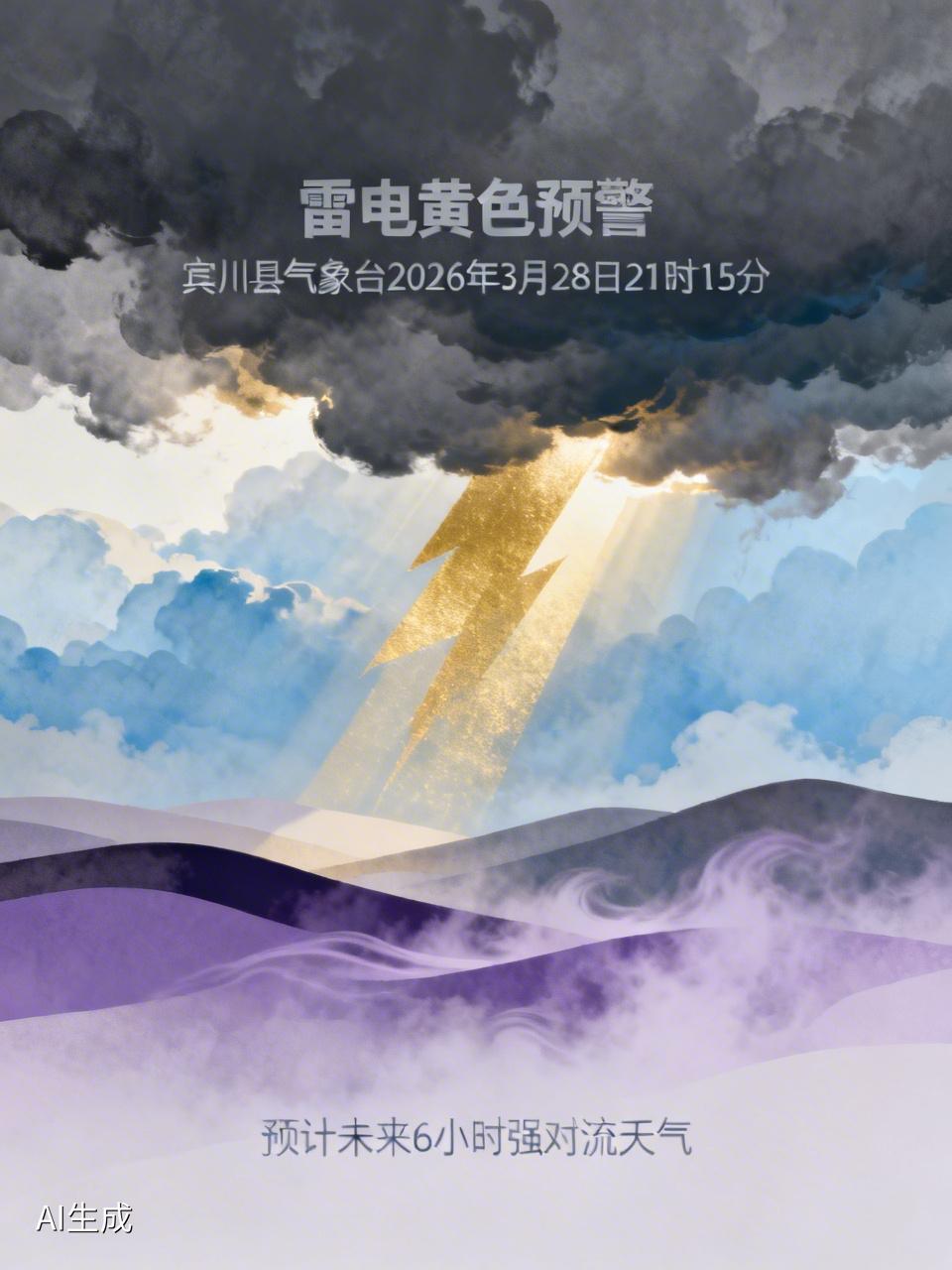 ⚡️⚡️⚡️【宾川县雷电黄色预警】宾川县气象台于2026年3月28日21时15分发布雷电黄色预警信号: 预计未来6小时内,大营镇、州城镇、宾居镇、力角镇、金牛镇、拉乌乡、钟英乡、乔甸镇、鸡足山镇、平川镇可能会出现雷电活动,部分地区还将伴有8级以上阵风、冰雹、短时强降水等强对流天气。请提前做好防雷电、防大风、防冰雹的准备工作。