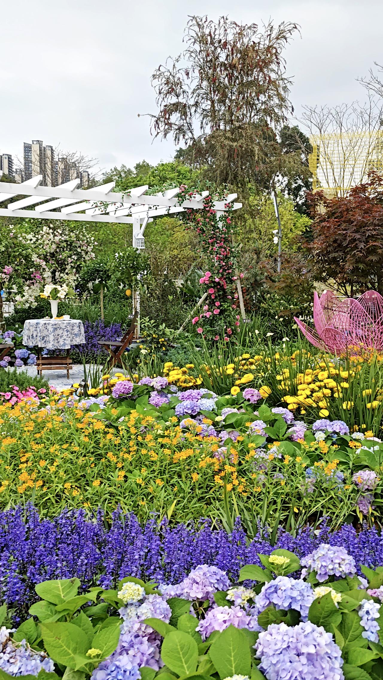 备受期待的粤港澳大湾区花展在深圳市福田区笔架山体育公园开幕了,今天下午去逛了一下,给大家汇报一下。 1,下午一点到两点,人多,两点以后,人会越来越多,拍照有点难度。天气不太给力,花展一般遇到阳光灿烂,蓝天白云拍出来照片最好。 2,组团式花展,每一个花团都是一个主题,深圳,香港,澳门,珠海各有主题花展。 3,喜欢赏花打卡的朋友,一定要来,规模虽然不是很大,但有精致之美。 4,不仅仅是花展,应当还有美食区,由于时间关系,我没去逛了。 5,最好还是别开车来,笋岗路和皇岗路都堵得够呛,估计找车位难于上青天。坐地铁到黄木岗站或者孖岭站孖,走一段路就到了,沿路都有指示牌,不看指示牌都行,哪儿人多往哪儿去。 6,看完了花展,要去逛一逛深圳最美的两座廊桥,深业上城东西廊桥,很有特点的。深业上城里面吃的很多。 深圳
