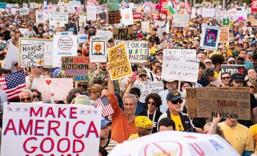 美丽风景线,建议多地联动。洛杉矶10万人参加“不要国王”抗议 多人被捕。