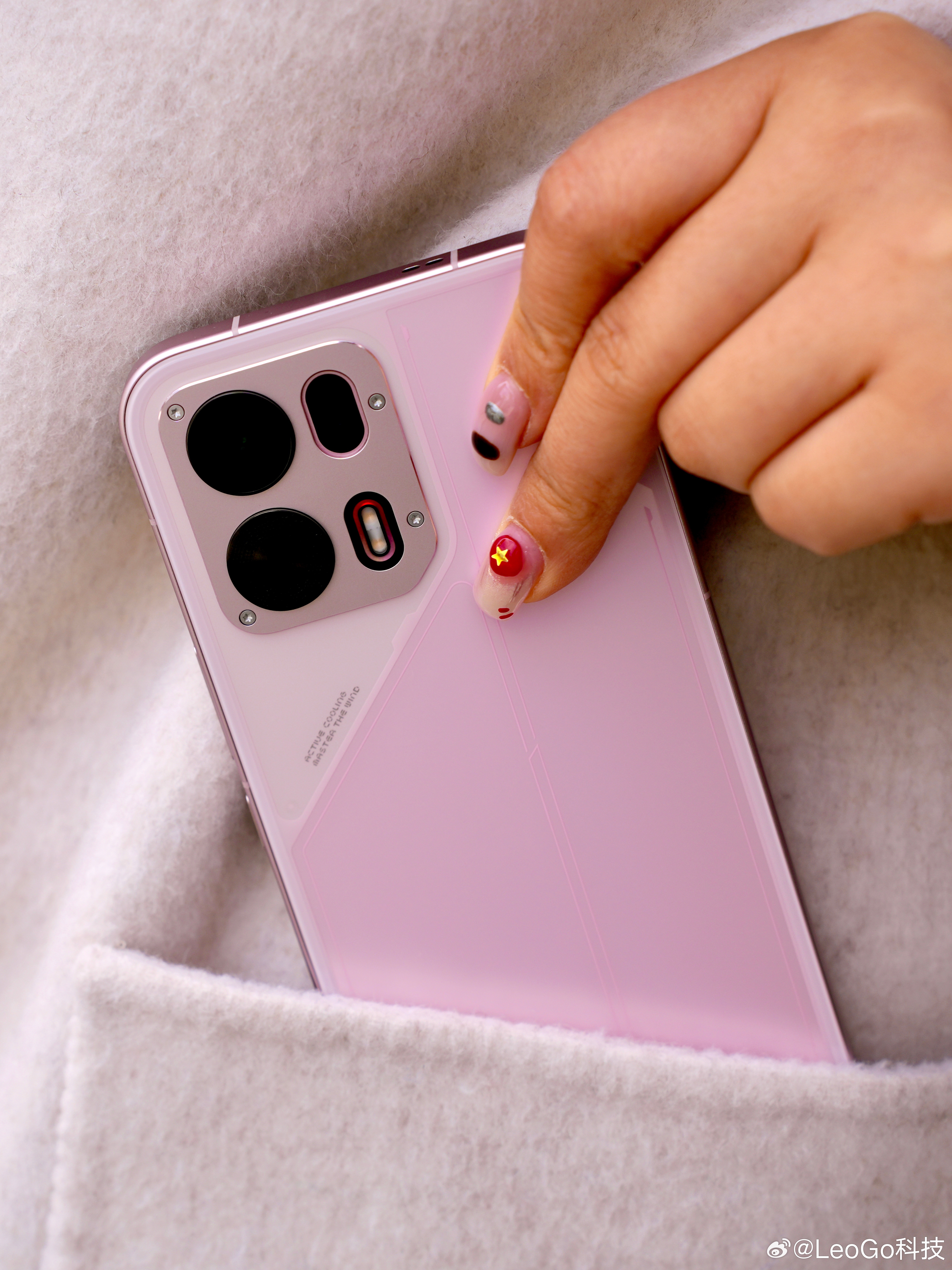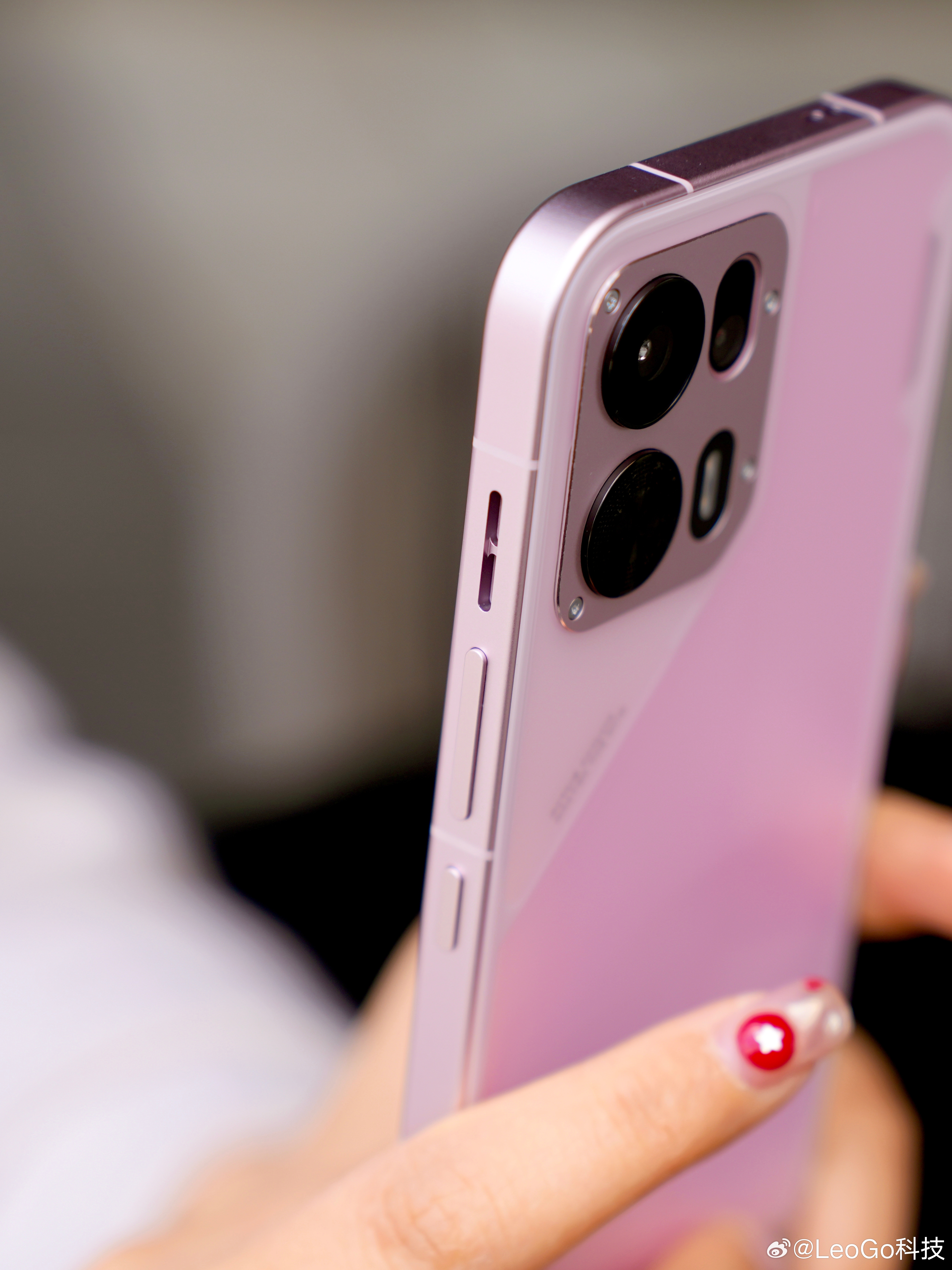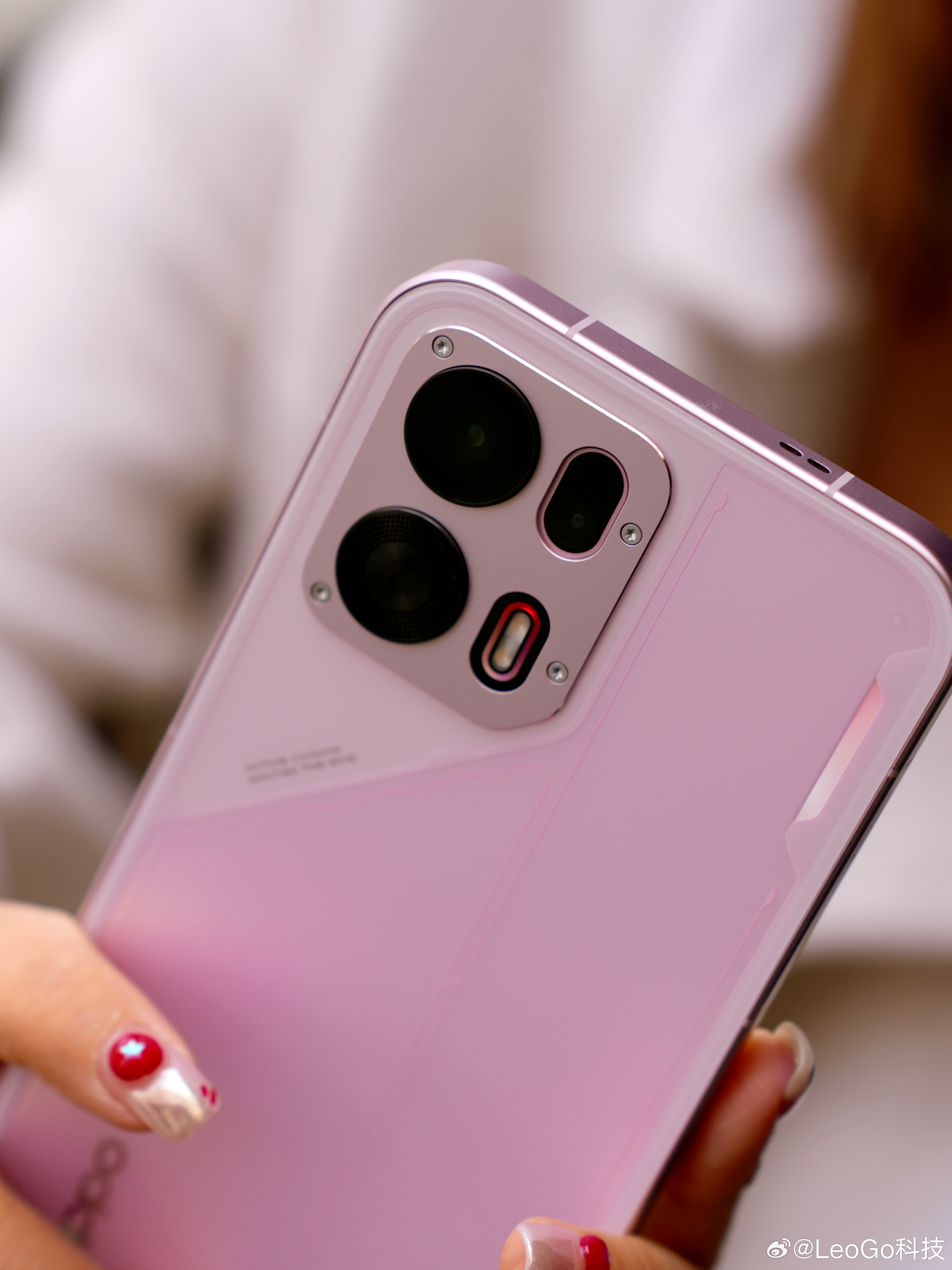 猛男の浪漫,藏在尘光粉里。不是甜腻的粉,是光线流转间的高级感。铝合金中框冰感趁手,三颗岚影呼吸灯一亮,回头率直接拉满。