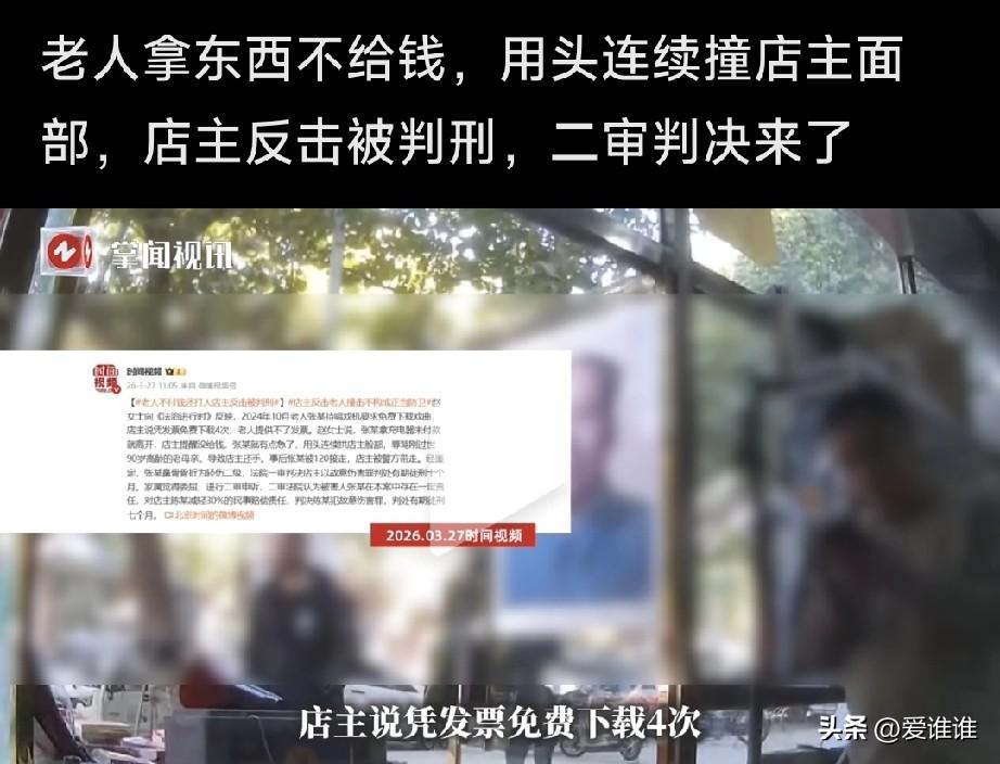 “谁在纵容‘恶’”!商店里老人拿东西不给钱,被店主提醒后,老人辱骂店主,并用头撞击他,店主反击被判刑七个月,网友说这是在纵容恶人! 江苏徐州,2024年10月,一位老人进店拿着唱戏机想免费下载戏曲,被告知需要出示在这家店购买的凭证,否则无法下载,老人又改口买充电器,店主陈先生递给他一个五元的通用充电器,老人拿了就走,没付钱,陈先生追到门口提醒了一句,老人当场发火,开口就骂。 老人专挑最难听的话辱骂,陈先生忍住了没动手,但老人不依不饶,直接用脑袋朝他脸上连续撞去,陈先生被撞得连连后退,在疼痛和羞辱中本能地推挡,顺手抓起一个音响底座挥了过去,老人鼻骨骨折,鉴定为轻伤二级。 案子到了法院,一审认定陈先生不构成正当防卫,以故意伤害罪判了十个月,家属不服上诉,2026年3月二审宣判,刑期减为七个月,同时判陈先生赔偿老人一万零七百余元。 法院认定老人存在过错,减轻了陈先生三成赔偿责任,但罪名不变,正当防卫仍未被认可,理由是反击造成轻伤后果“超出了必要限度”,而陈先生虽未离开现场,但报警人是对方,不构成自首。 一个五块钱的充电器,一句提醒,最终换来刑期和赔偿,老人辱骂在先、撞击在先,可一旦还手造成轻伤,天平就偏了,很多人问:当亲人被辱、自己被打时,本能地推挡,代价为何如此沉重? 正当防卫的边界划在哪里,才能不让守法者因自我保护而付出自由,这起案子留下的,正是这样一个值得所有人想清楚的问题!