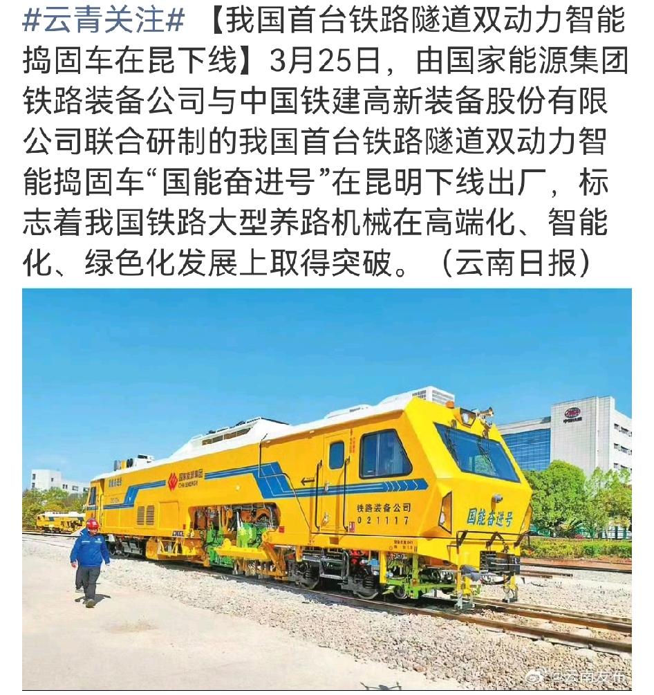 3月25日,我国首台铁路隧道双动力智能捣固车“国能奋进号”在昆明下线,这可是我国铁路大型养路机械发展的大突破。 铁路捣固车能保障线路安全稳定,这次“国能奋进号”核心革新在动力系统。它采用柴油发电机组与动力电池双动力,隧道内作业用纯电驱动,尾气零排放、噪声大降;长距离转场和露天作业就切换混动模式。 而且它还搭载国产智能捣固作业系统,有“智慧大脑”和“敏锐感官”,实现作业自动化、精准化。这装备4月就正式投入使用,将为铁路隧道养护带来绿色化、智能化方案。