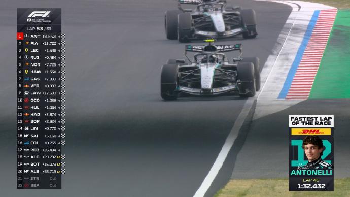 安东内利背靠背夺冠,19岁的新王,已经不需要“新秀”这个词了 铃鹿正赛结束,安东内利又赢了。 从上海到铃鹿,背靠背冠军,连续两站杆位发车、正赛领跑。19岁的意大利人,三站两冠,赛后积分榜领跑。F1历史上最年轻的积分榜领跑者,没有之一。 但这场比赛的过程,远没有结果看起来那么轻松。 起步灾难,靠安全车翻盘 五盏红灯熄灭,安东内利起步空转,瞬间掉到P6。皮亚斯特里上到P1,勒克莱尔P2,诺里斯P3,拉塞尔P4。梅奔双雄,一个比一个惨。 前几圈拉塞尔大杀四方,连超勒克莱尔和皮亚斯特里上到P1。但到了第22圈,贝尔曼上墙,安全车出动。 此时拉塞尔刚进站,直接被安全车坑在车阵后面。安东内利没进站,安全车期间捡了领跑位。比赛重启后,安东内利迅速带开,再也没给任何人机会。 拉塞尔在TR里吐槽:“这两站我们运气也太差了。”上海站排位赛被队友挡,铃鹿正赛又被安全车坑。连续两站,他的速度不输队友,但结果总差一步。而安东内利,两次都笑到了最后。 迈凯伦回来了,法拉利也硬了 皮亚斯特里第二,这是迈凯伦本赛季第一个领奖台。上海站双车DNS之后,铃鹿直接拿亚军,这支车队确实在反弹。诺里斯第五,两台车都进积分区,迈凯伦的复苏比预期快得多。 勒克莱尔第三,这是法拉利本赛季最好的正赛成绩。汉密尔顿第六,起步阶段一度上到P2,但长距离节奏还是差了点。 最精彩的是最后几圈,勒克莱尔和拉塞尔缠斗,两人交替超车,勒克莱尔硬是守住了领奖台。法拉利在高速弯里的稳定性,确实比红牛强。 红牛彻底掉队了 维斯塔潘第八,从第11发车追到第8,不算太差,但跟去年比差远了。哈贾尔第14,两台红牛都没进前五。RB22的抓地力问题,从墨尔本到上海到铃鹿,一站比一站严重。 维斯塔潘赛后说“车不行,我没办法”,这话从他嘴里说出来,比任何数据都有说服力。红牛在铃鹿拿过四连冠,今年连积分区都进得费劲。新规下的能量管理,红牛确实没吃透。 中游大混战,加斯利杀回来了 加斯利第七,劳森第九,奥康第十。Alpine两台车都拿分,奥迪博托莱托没进积分区,但队友霍肯伯格也在前十边缘。中游集团的差距,已经缩小到一场安全车就能翻盘的程度。 这场比赛的意义,不只是“又赢了一场” 安东内利19岁216天,成为F1历史上最年轻的积分榜领跑者。这个纪录,比维斯塔潘当年还早。连续两站杆位+冠军,上海站是生涯首冠,铃鹿是背靠背冠军。新秀赛季三站两冠,这开局,比汉密尔顿2007年还猛。 有人说他是靠车赢的。W17确实快,但起步失误、安全车、缠斗、最后几圈的防守,都是他自己扛下来的。把优势变现,本身就是能力。 日本站结束,F1将进入一个月的休赛期。4月底迈阿密,安东内利能不能三连胜? 红牛能不能找回状态?迈凯伦还能不能继续往上走?这些问题,要等一个月才有答案。但至少现在,积分榜第一的名字,叫安东内利。【来自懂车帝车友圈】