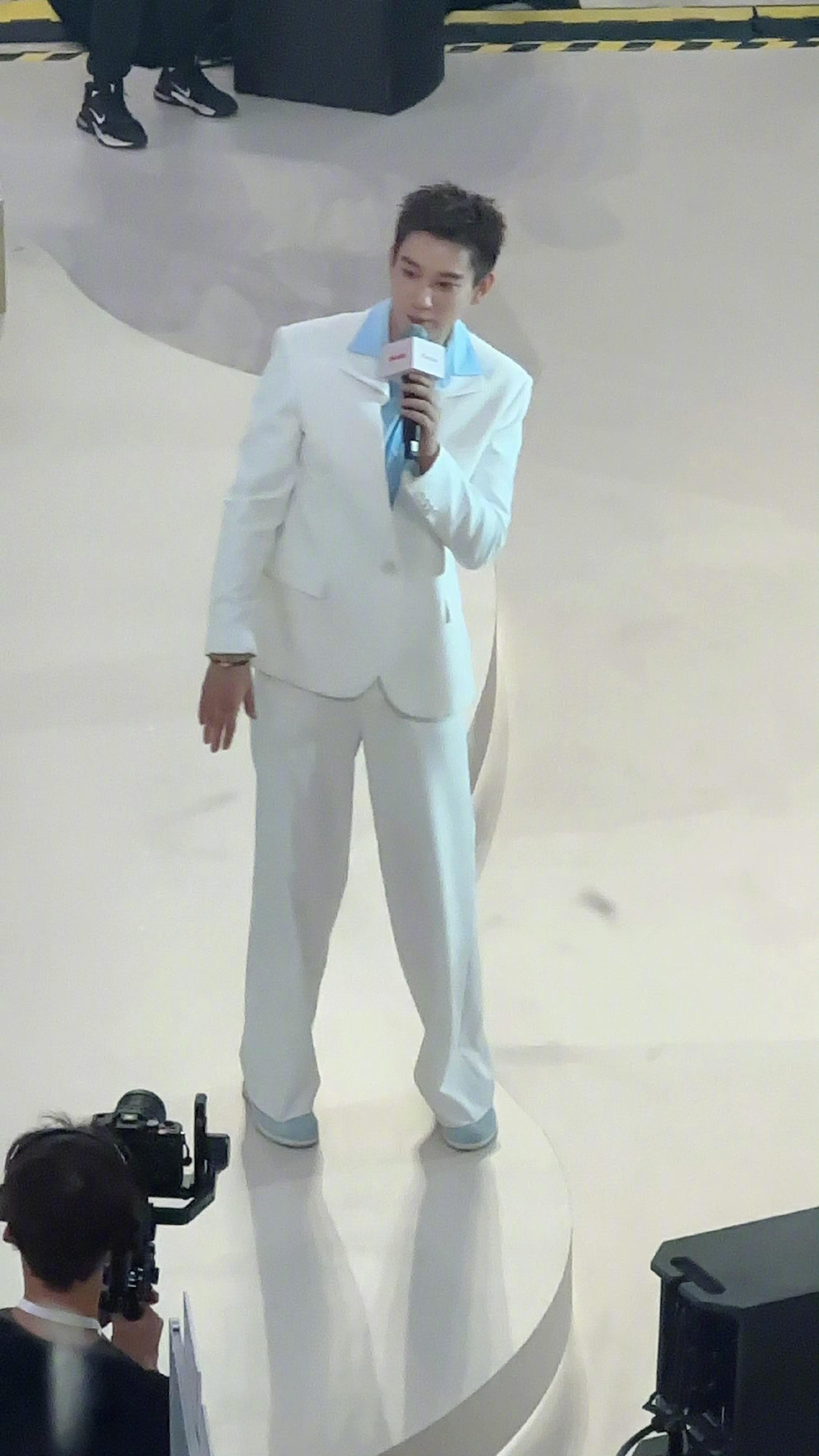 王子奇武汉活动武汉偶遇王子奇王子奇武汉Bata活动造型封神,纯白西装尽显优雅,白马王子本人没错了