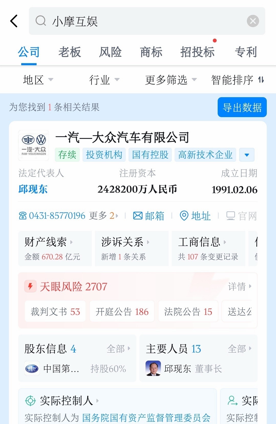 于是热心的网友们用天眼查搜了一下……大v聊车