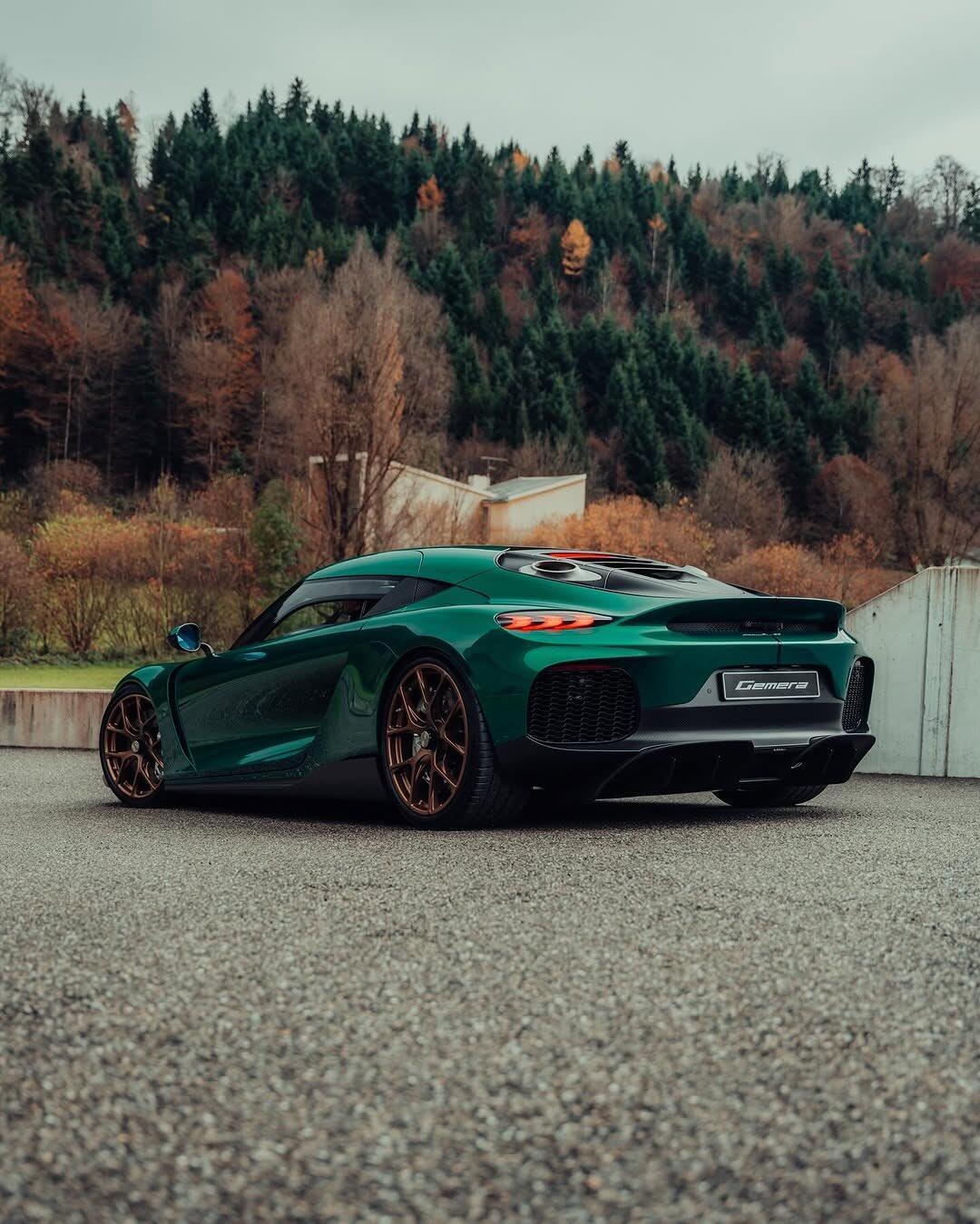 柯尼赛格Gemera跑车准备开始量产,5.0TV8+三电机、零百约1.8秒,全碳车身+旋翼门 外观,车身通体碳纤维曲面,保留独特刀锋棱线。环绕式无框挡风玻璃和车顶衔接好,旋翼式车门取消B柱,向上翻转开启。 前脸分层式大进气口来确保散热,LED矩阵大灯有 幽灵徽章 有辨识度,可选 幽灵套件 提升下压力。 尾部,贯穿式尾灯+顶置中置排气、主动式鸭尾扰流板。 车身覆盖件和结构件多用碳纤维,部分裸露编织纹理。预计标配20英寸锻造轮毂+碳陶刹车,多色卡钳可选。 动力,5.0T双涡轮V8发动机+三电机,综合最大功率2300马力,扭矩2749N·m,零百加速约1.8秒。9速轻量化变速箱换挡快,16度电池支持纯电和快充。 最后,柯尼赛格Gemera量产版的主要亮点: 硬件拉满,5.0T双涡轮V8+三电机,综合2300马力、2749N·m,零百加速约1.8秒。 全车用了大面积碳纤维+无B柱旋翼门、空气动力学套件,兼职颜值和轻量化、刚性。 四座超跑,支持纯电行驶和快充。 但只适合顶级小众玩家,门槛太高,整车养护成本高,碳纤部件维修昂贵。