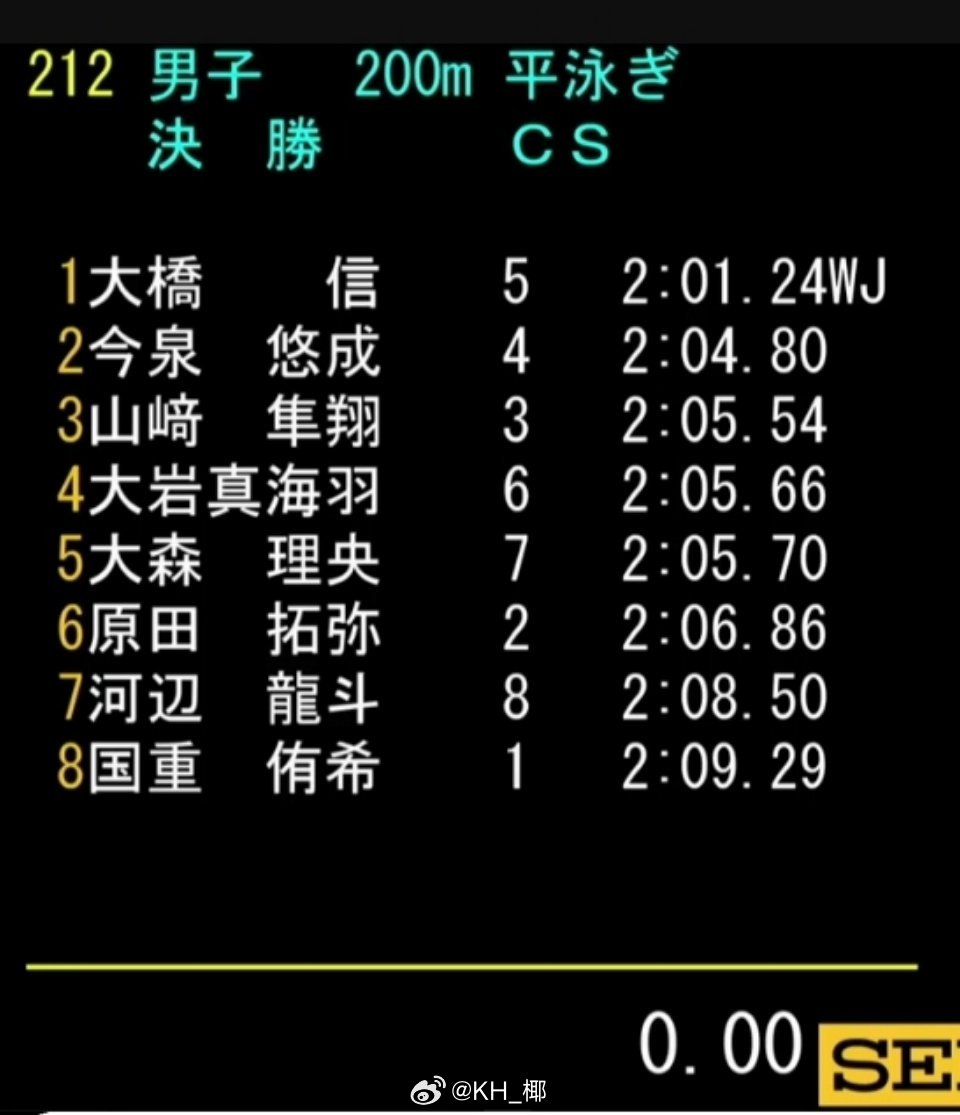 日本JOC春季水泳競技大会 男200蛙CS组决赛大桥信 2:01.24 WJR两