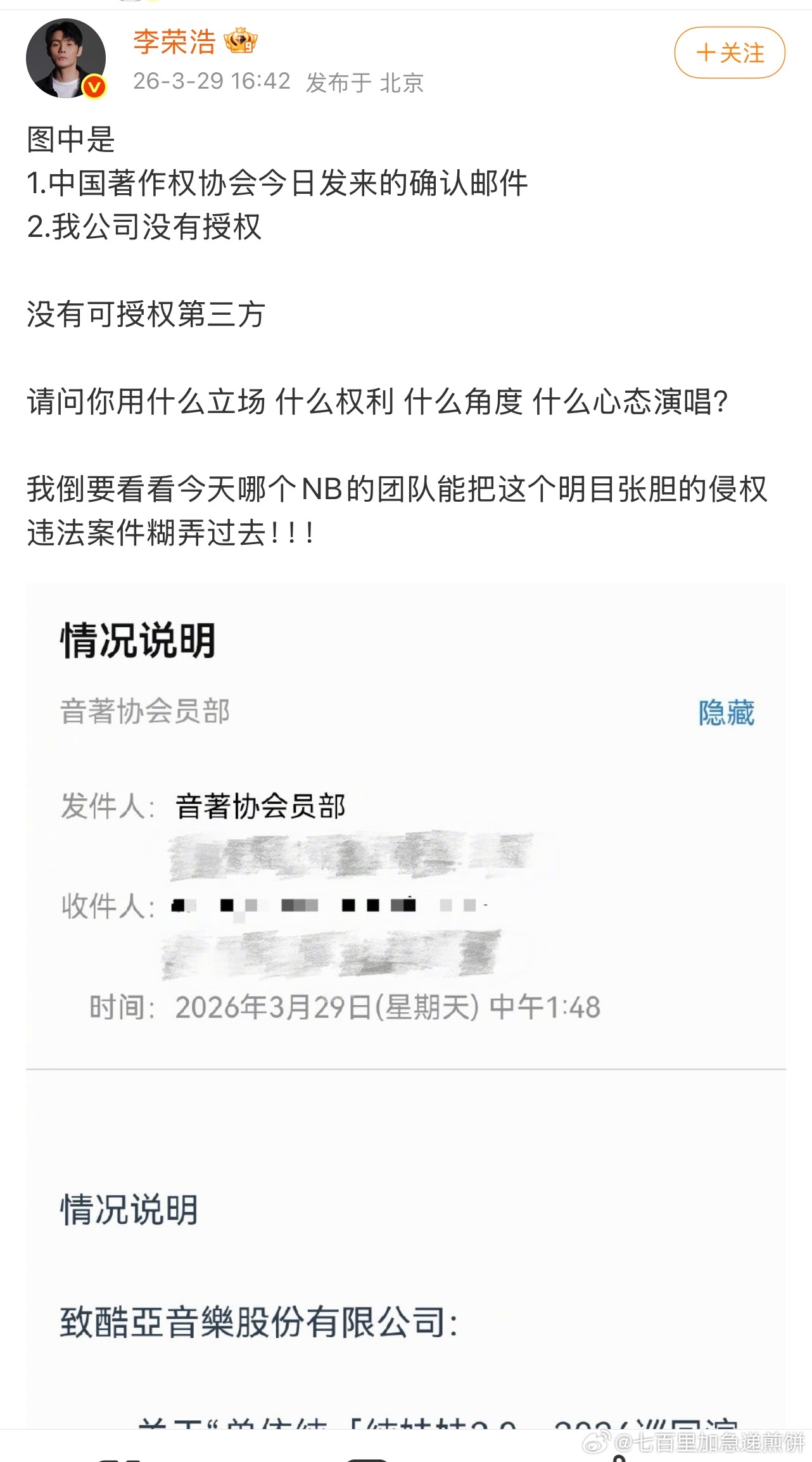 李荣浩再次发博,强调未授权,质问为何演唱(好几个感叹号,感觉好生气单依纯道歉单依