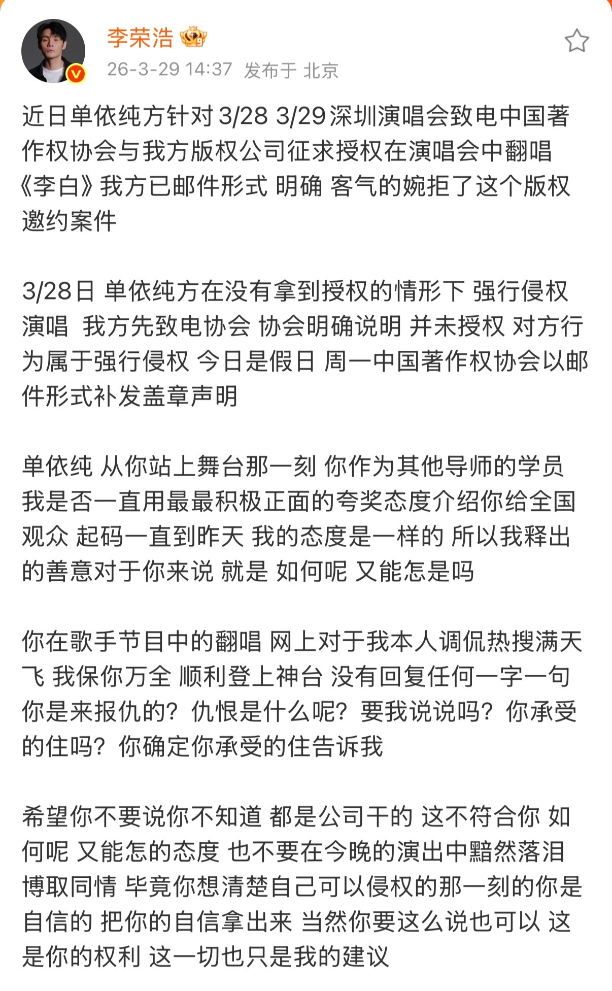 单依纯发文回应强行侵权单依纯说一定会把版权的红线标清