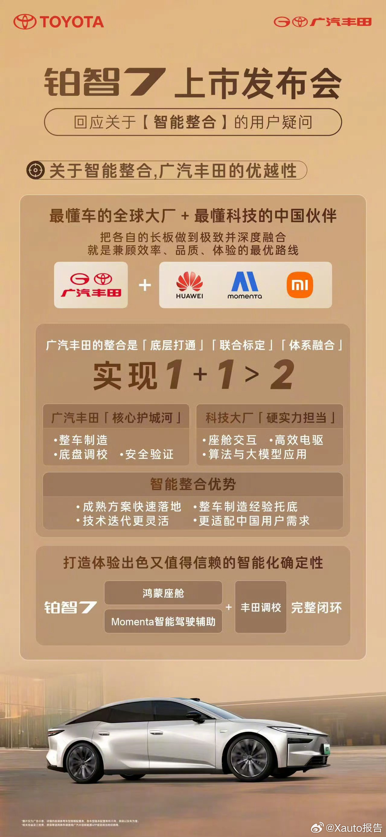 铂智7上市限时补贴权益价14.78万起3月29日,广汽丰田铂智7上市,限时补贴后14.78万起,全系进入20万元内,推出五大上市权益。该车为大型纯电轿车,三电安全保障完善,自燃赔新车、电池衰减超标免费换,可选双腔空悬,享10年/30万公里超长质保。配备鸿蒙座舱5、激光雷达智驾终身免费,空间越级且配备零重力座椅、雅马哈音响、车载冰箱等豪华配置,融合丰田品质与前沿智能科技,竞争力突出。广汽丰田铂智7广汽丰田铂智7上市坦白局铂智7