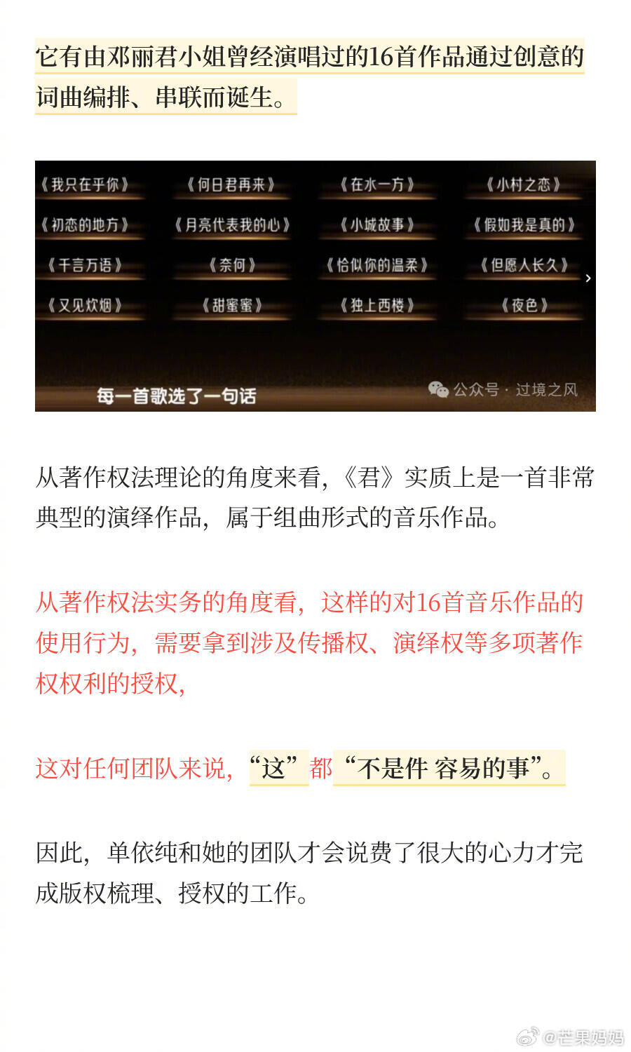 李荣浩 单依纯强行侵权单依纯之前为了唱《君》把邓丽君歌曲的相关版权都谈妥了,感觉