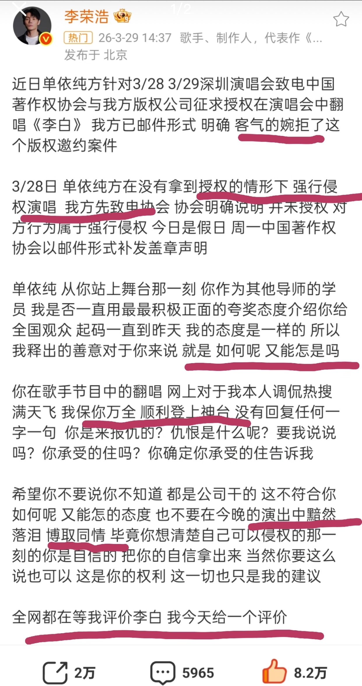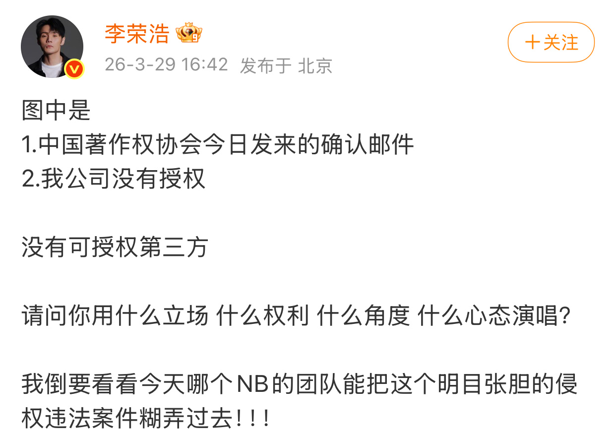 李荣浩四连质问单依纯 李荣浩再次发文控诉单依纯看来李荣浩是真的很生气了,我觉得更