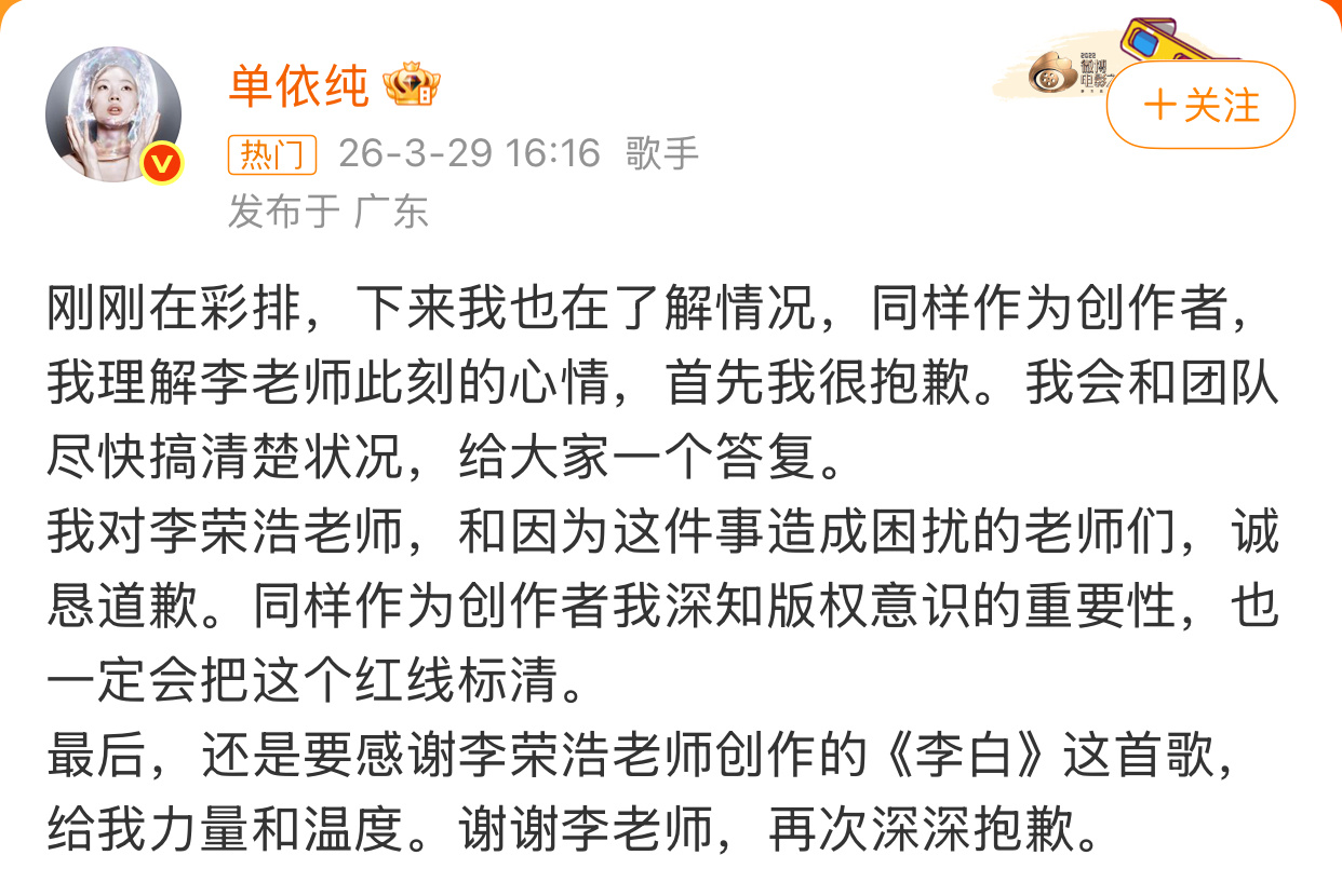 李荣浩四连质问单依纯 李荣浩再次发文控诉单依纯看来李荣浩是真的很生气了,我觉得更多的是对单依纯的失望吧,感觉她已经被名利带跑偏了,当初就应该听李健老师的沉淀下来。