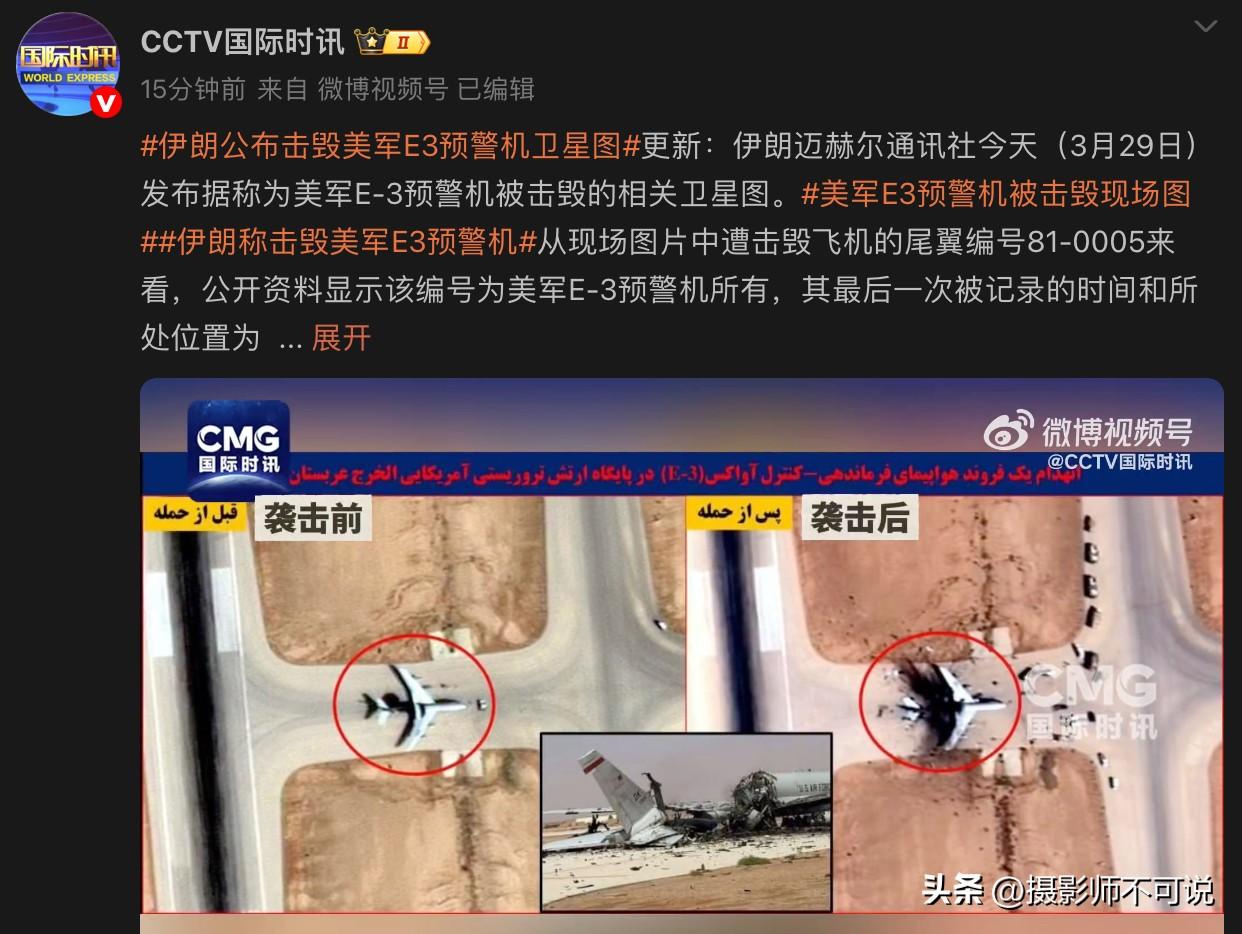 美军E3预警机疑似被摧毁,这可是替换成本高达7亿美元的高价值军事目标啊,这可比损失战斗机更加让人肉疼,而且损失更大!从伊朗发布的微信图片和新闻报道的现场图片来看,这架E3预警机疑似是在沙特苏丹王子空军基地里被摧毁的,直接被炸成了两节,算是彻底被毁了。而且报道说附近其他飞机也“遭受严重损坏”。经常打游戏的老铁们都知道,当玩家面对BOSS时最可怕的是它老不现血条,很可能越打越绝望。可一旦BOSS现出了血条,那它离受伤甚至被ko就是时间问题了。我感觉现在美军就有点儿像游戏中的BOSS,几乎每天都有比较大的战损出现,BOSS不要面子的吗?