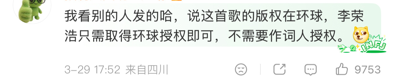 吴向飞喊话李荣浩道歉李荣浩的回应,我个人觉得是教科书级别的。既有底气,也有态度,很好。这才是有明星的活人感李荣浩回应吴向飞热点观点 吴向飞喊话李荣浩道歉