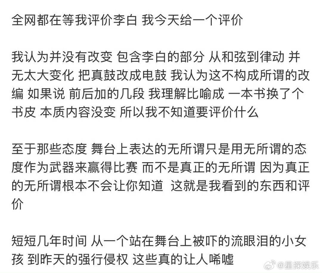 李荣浩 单依纯强行侵权李荣浩这篇长文看得人心里堵得慌。从《好声音》到《歌手》,他一直捧着善意护着单依纯,结果换来的是被拒绝授权后还强行演唱《李白》。那句“你是来报仇的吗”,哪里是质问,明明是攒了太久的失望碎了一地。“如何呢 又能怎”,曾经是洒脱的梗,现在听着只剩讽刺。尊重原创从来不是口号,是底线啊。如何呢 又能怎