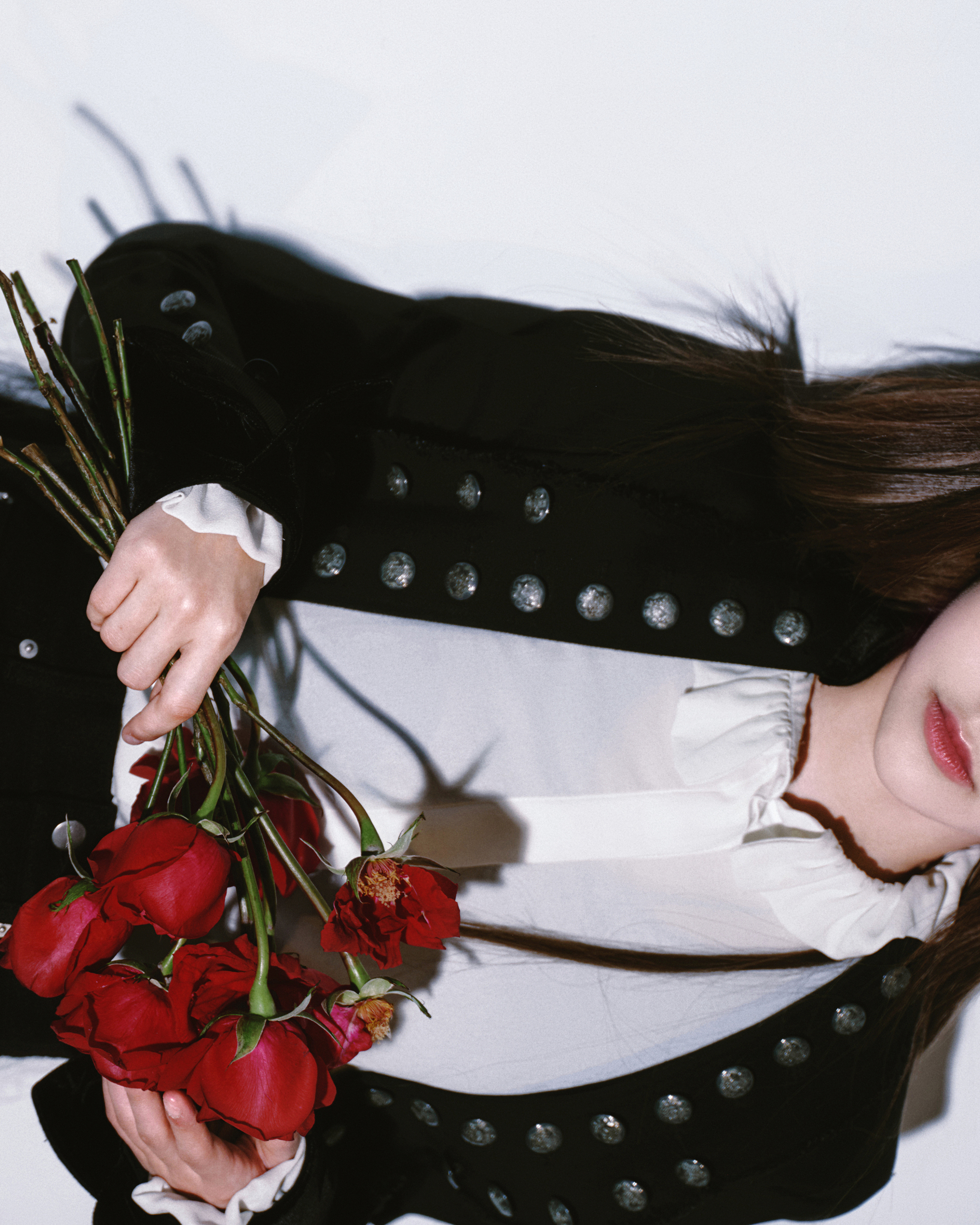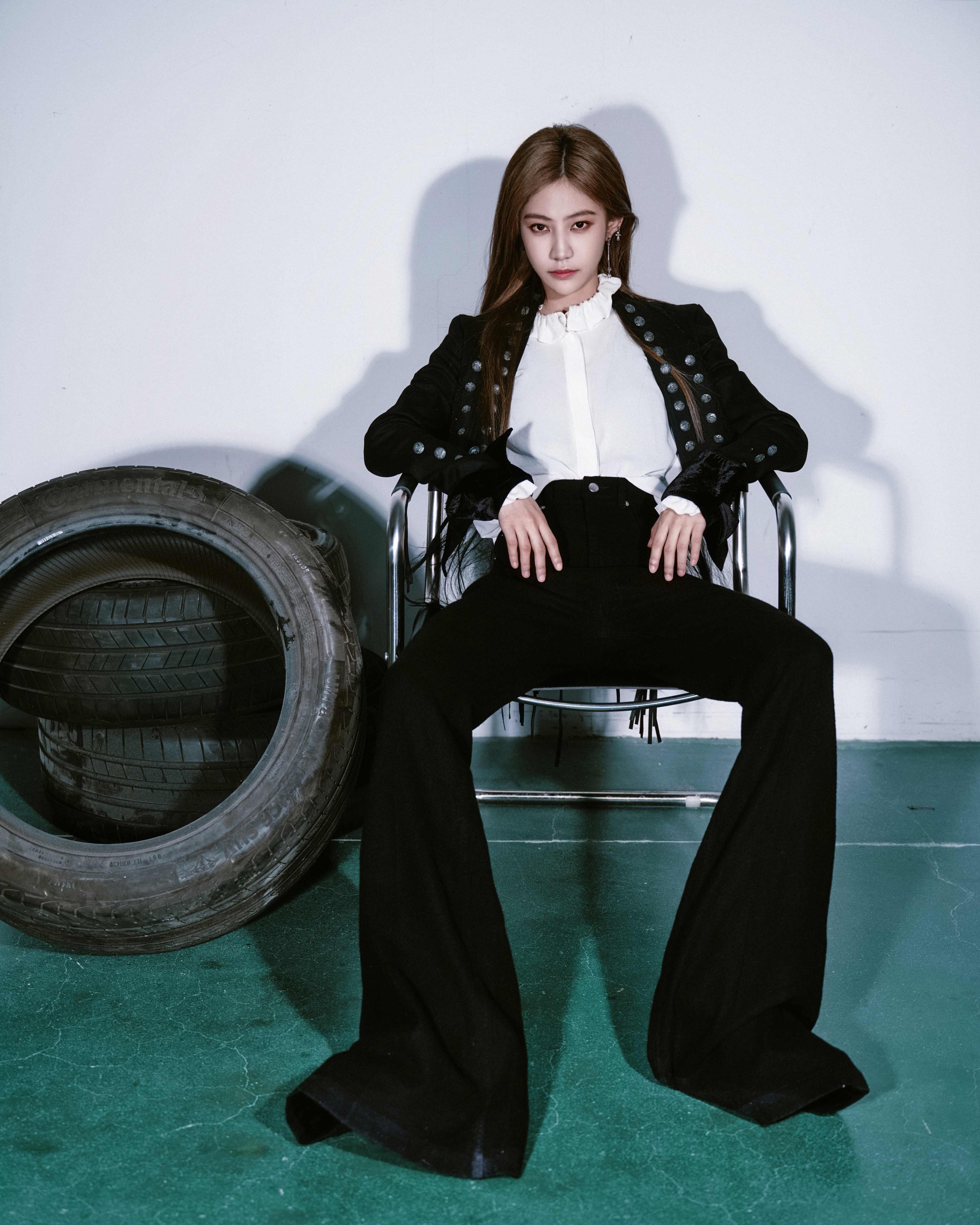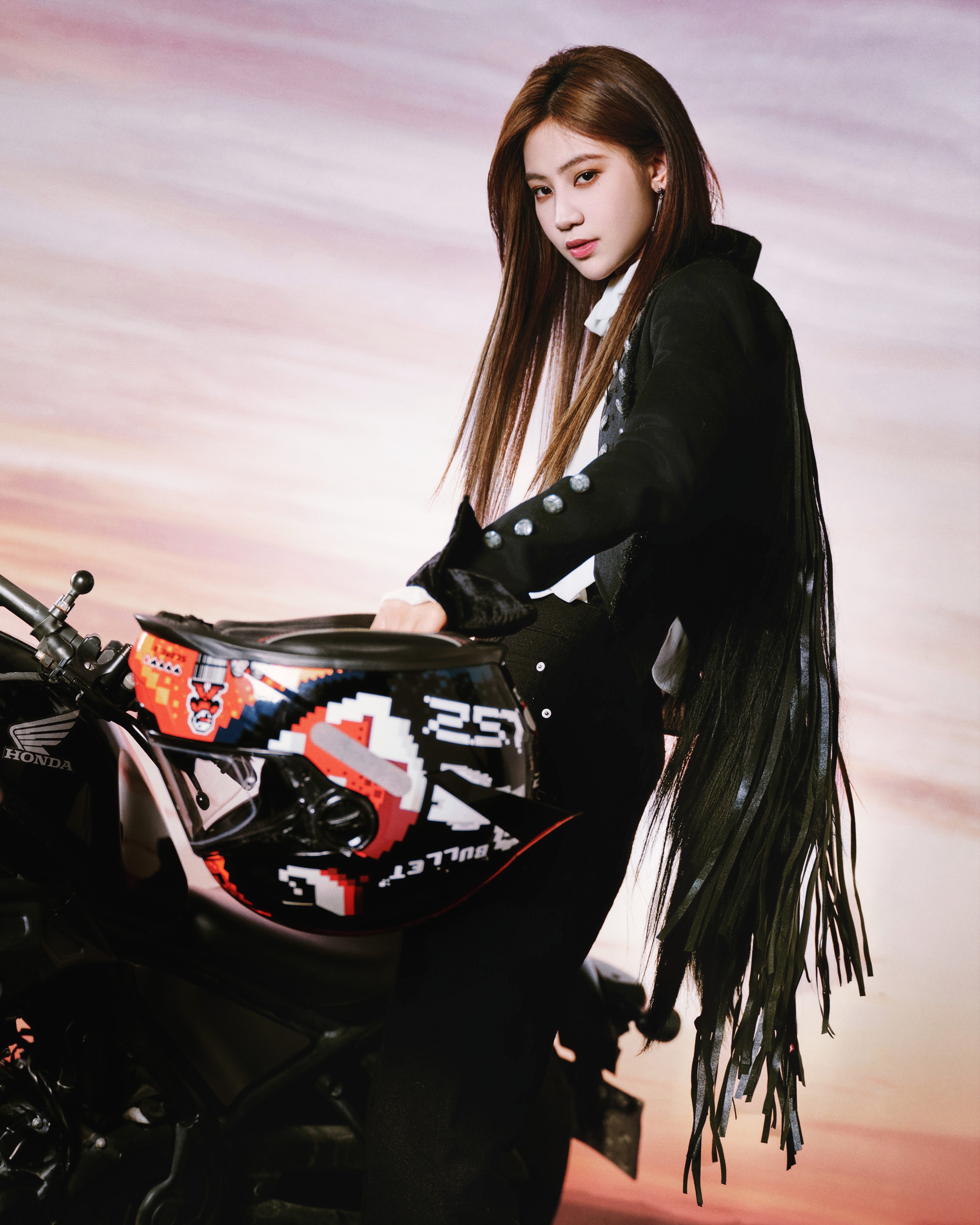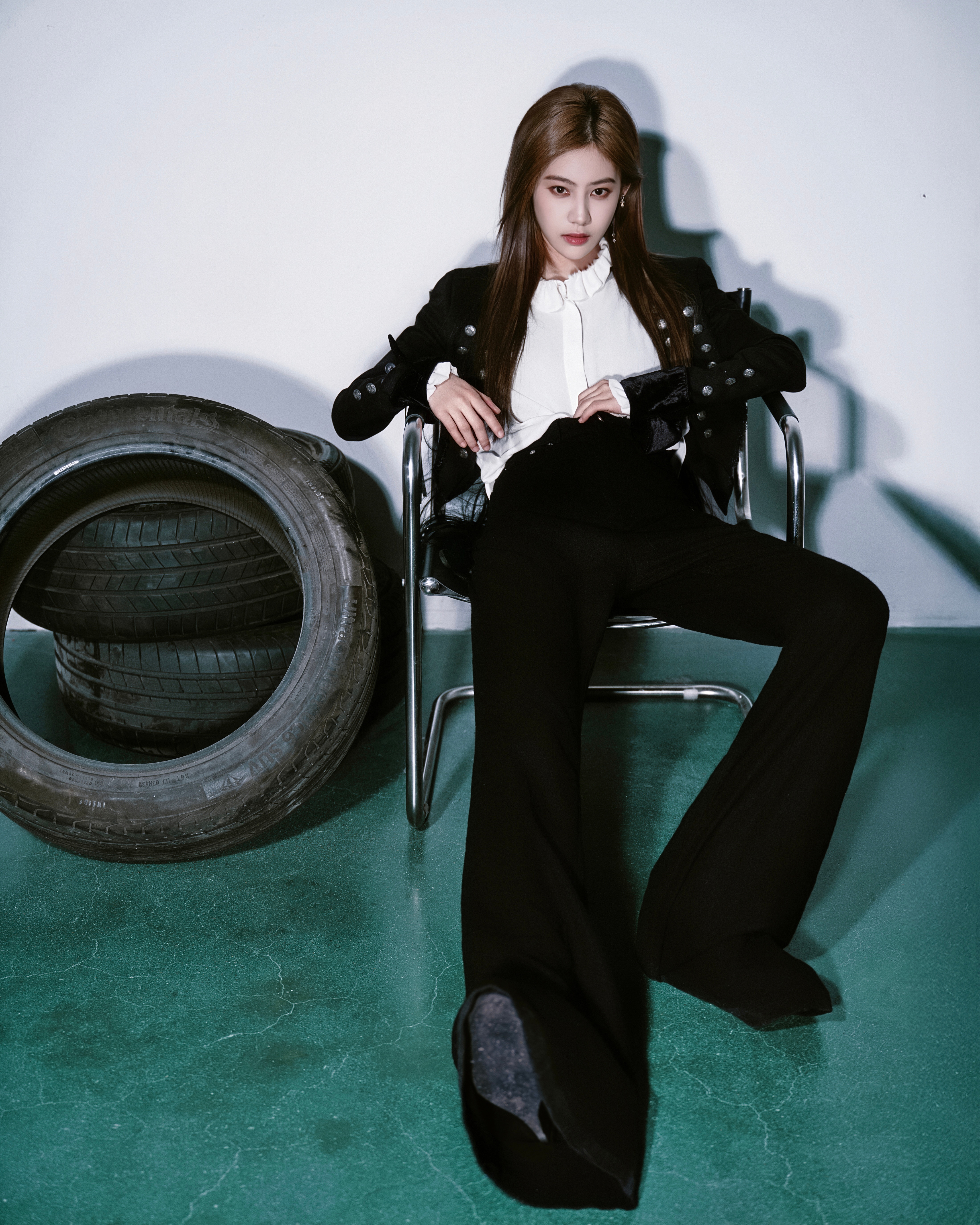 今日巅峰之夜造型 Look,一琦身穿宫廷骑士风西服套装出镜,经典黑白搭配,机车玫瑰,利落登场📸🥀