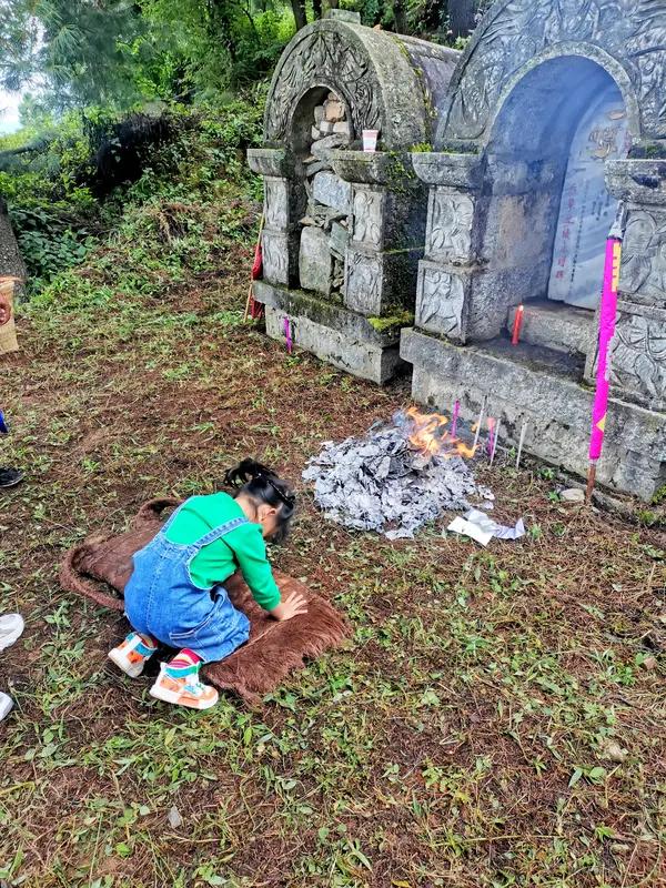 我们的乡俗是,等亲叔伯、兄弟姐妹都聚齐后,一起去上坟。先祭拜爷爷奶奶,焚香烧纸、磕头行礼,随后各自去给离世的父母焚香烧纸、磕头祭拜。叔伯、兄弟姐妹会把祭拜大爷大妈、叔叔婶婶的香纸钱交给叔伯的亲生子女,大家一同焚烧,共同祭拜。