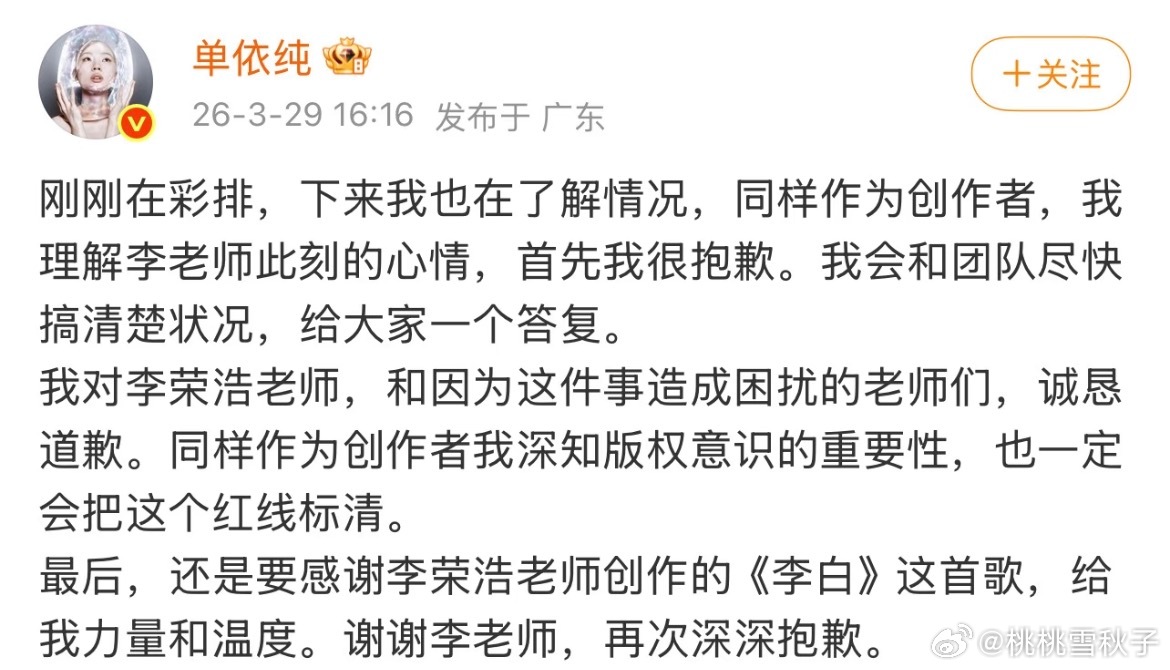 李荣浩今天不将就???他之前不是把版权给单依纯了吗不然怎么在歌手上唱搞不懂这个版权,我以为是给了之后就可以唱了 李荣浩