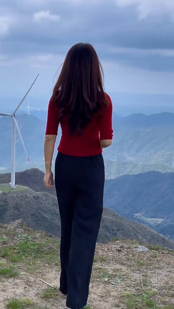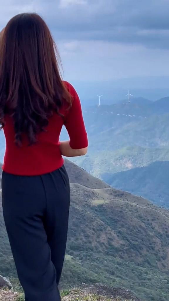 站在山顶,感受风的力量,与自然融为一体。