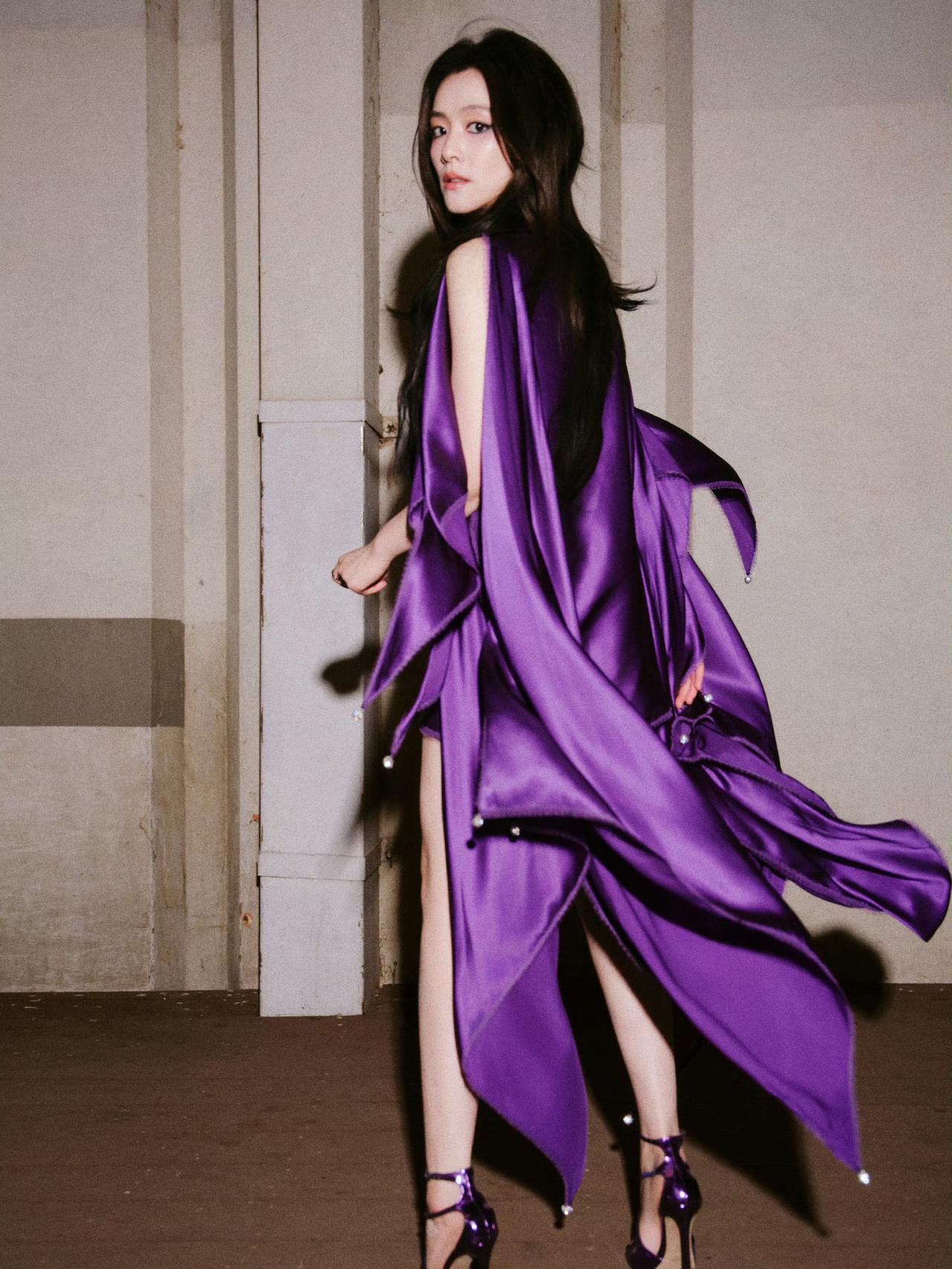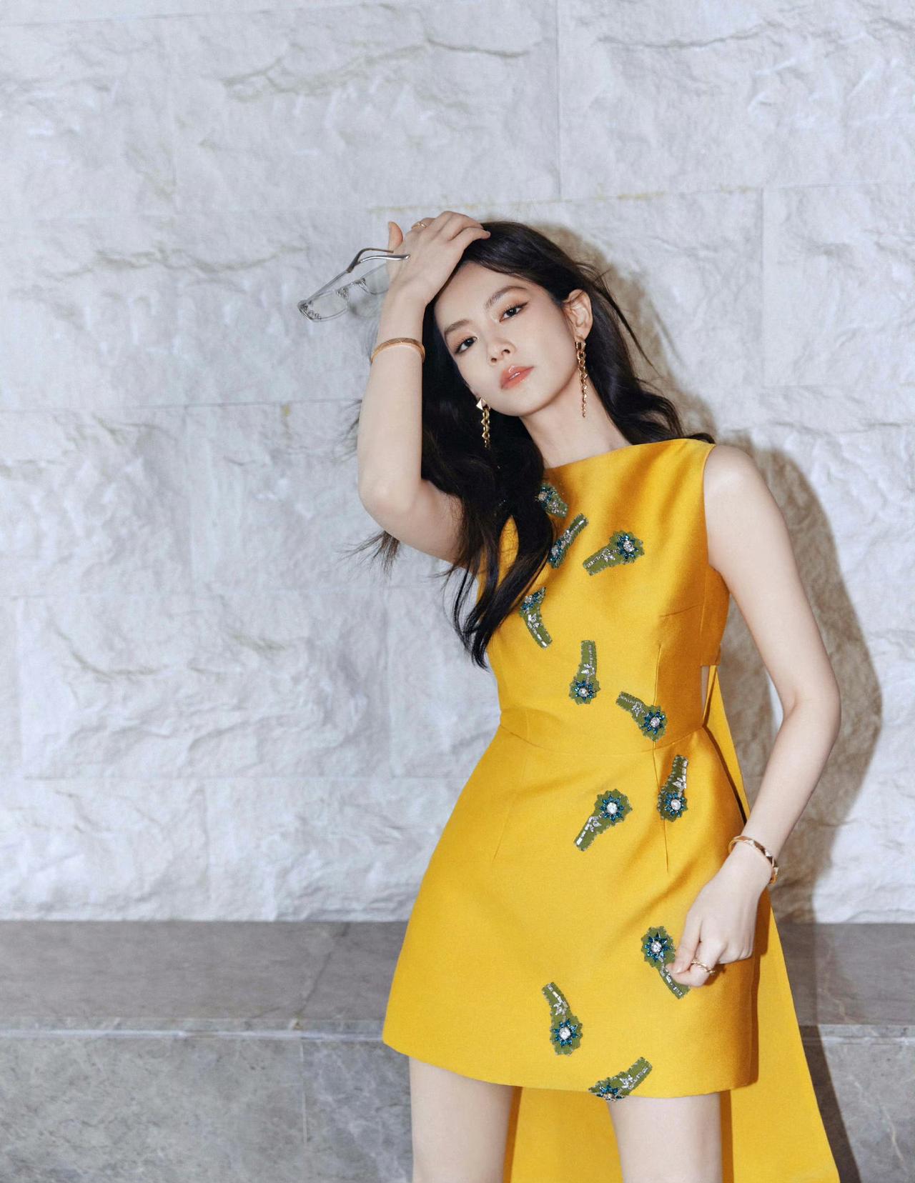 当陈昊宇选择跳出“安全区”,浓色便成了她最亮眼的表达。 一袭紫色丝缎长裙,以流动的线条勾勒出她的潇洒与妩媚,夜色中如同一场流动的梦境;而姜黄色短裙则用明艳的色彩唤醒了她的灵动,前短后长的剪裁藏着利落的锋芒。 清冷骨相遇上浓烈色彩,没有被掩盖,反而被赋予了更丰富的层次,冷艳与热烈在她身上达成了奇妙的平衡,美得张扬又高级。