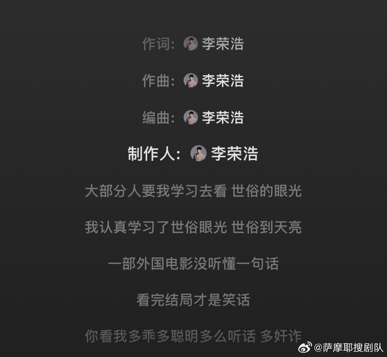而且搜了下李荣浩以前微博,怼人真的好🐂,大出圈的就有《电动车维修论坛发歌》《网易云音乐草台班子》《物业爱好者不要diss》战绩可查啊!难怪李荣浩气成这样李荣浩怼人战绩可查