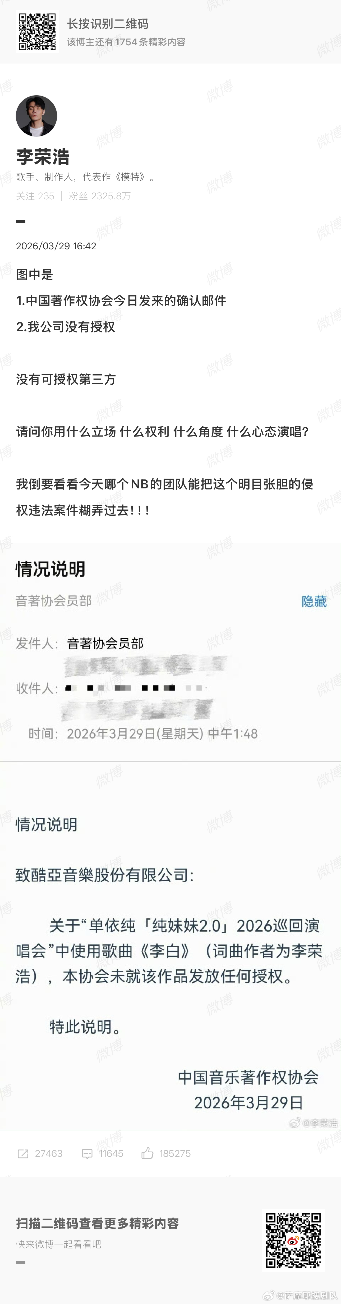李荣浩 单依纯强行侵权才看到李白这首歌从词曲到制作人再到和声贝斯吉他全是李荣浩自己来的,而且李荣浩也因为这首歌从幕后走到幕前红到现在。