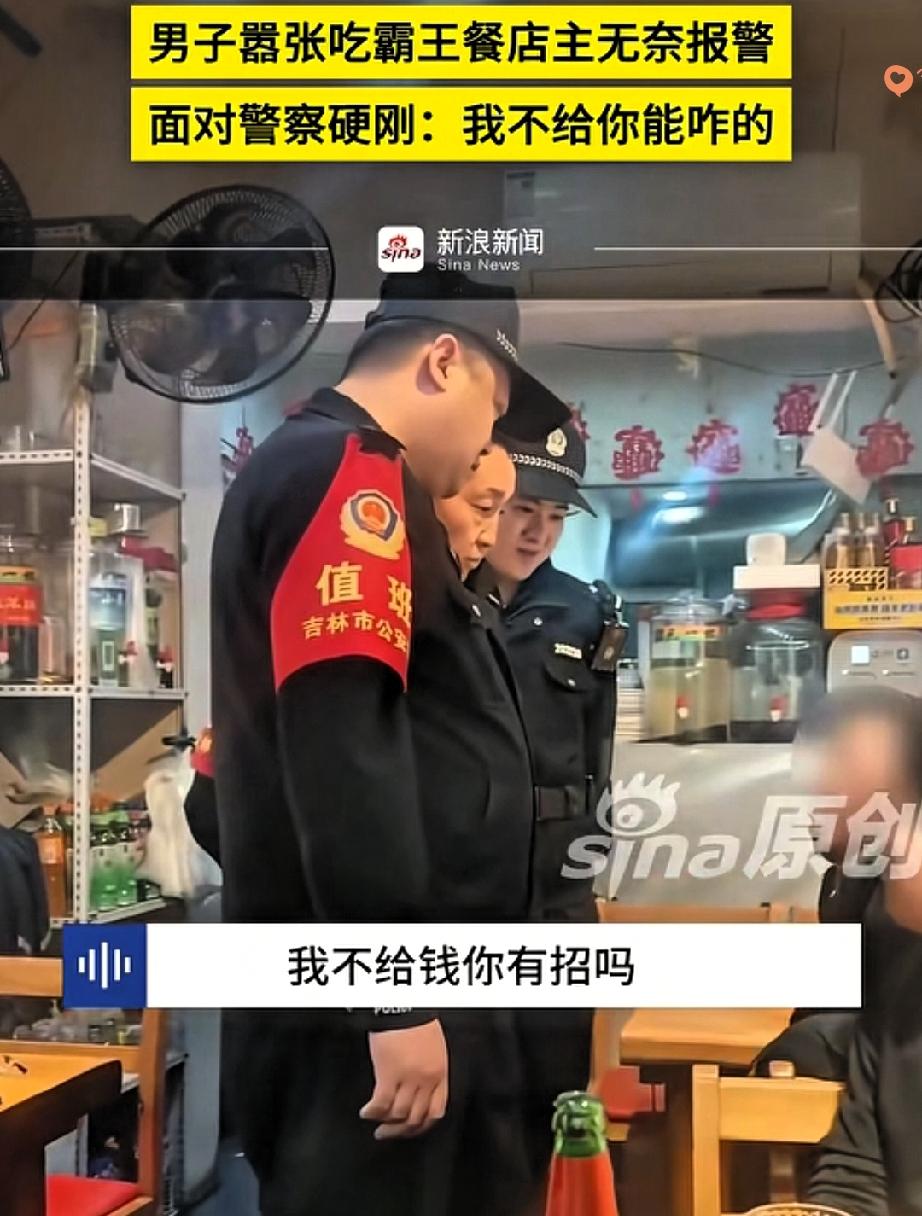 见过吃霸王餐的,真没见过这么嚣张的! 吉林一男子吃完饭直接赖账,老板想着等民警