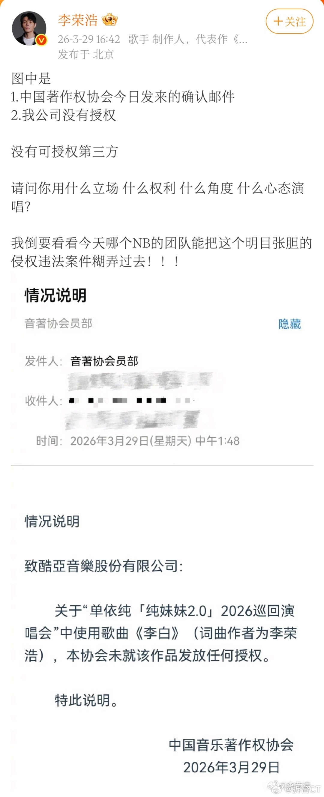 李荣浩4连质问单依纯看得出来,李荣浩是真生气了。在单依纯草草道歉后,继续追加证据