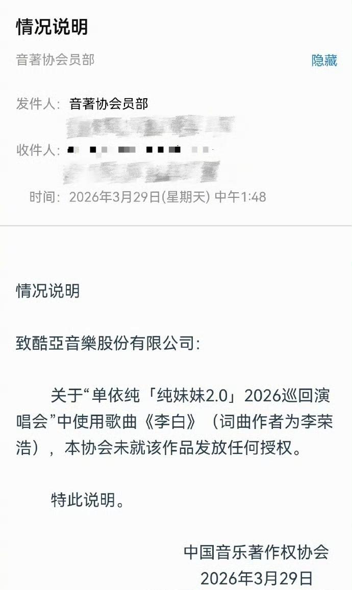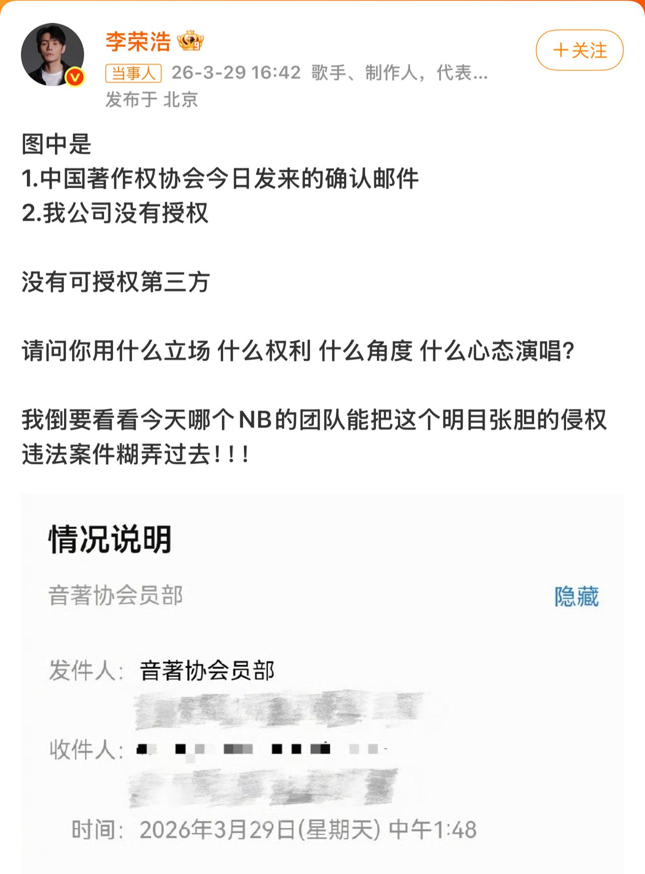 李荣浩4连质问单依纯,不接受道歉。 没想到这个哥哥如此硬钢,晒出了著作权协会相关情况说明,并就立场、权利、角度和心态发出了四连问,底气十足。 说真心话,这事单依纯的确是做错了。 不仅是这次侵权,那首《李白》确实唱的太惹争议,估计李荣浩听了后早就觉得不舒服了,看来这是忍了很久了吧。
