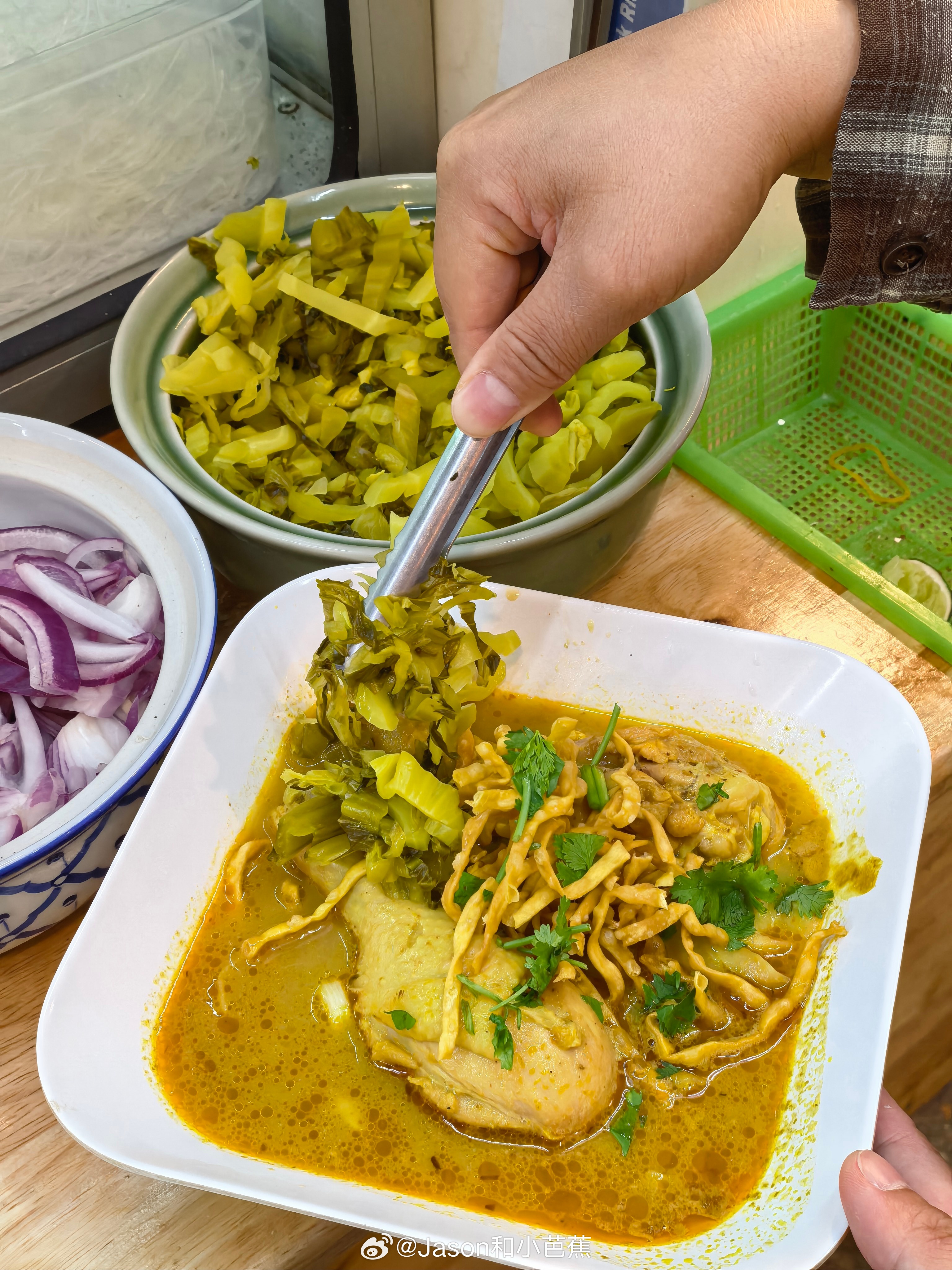Khao Soi Khun Yai号称邓丽君爱吃的咖喱面,味道确实不错,咖喱汤很浓郁,但是量太太太少了!同样的口味小芭蕉更喜欢瓦洛洛市场的这家咖喱面,而且一定要加这个黄澄澄的酸菜,巨好吃!