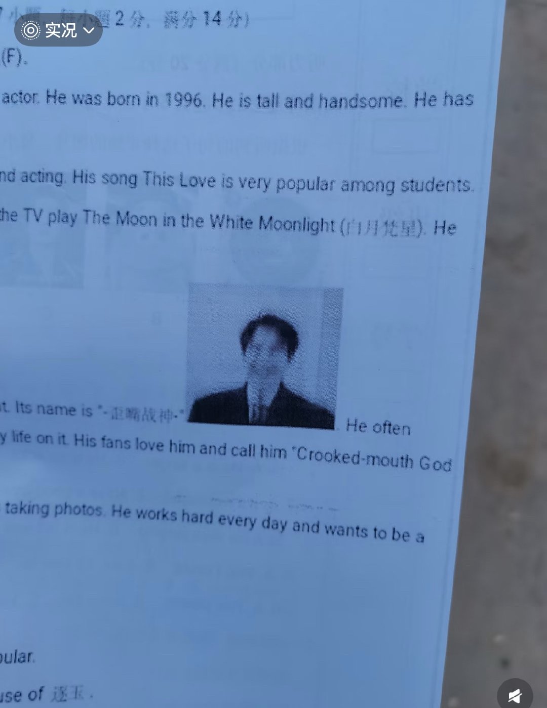 “做卷子的动力:试卷里的敖瑞鹏。”哈哈哈哈哈哈哈哈哈哈哈哈