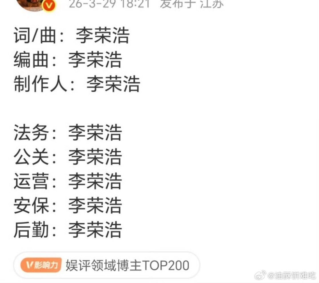 李荣浩4连质问单依纯李荣浩一个人就是一支队伍具象化了