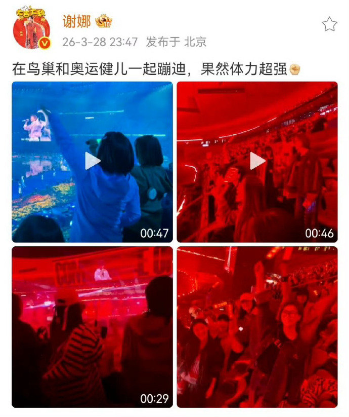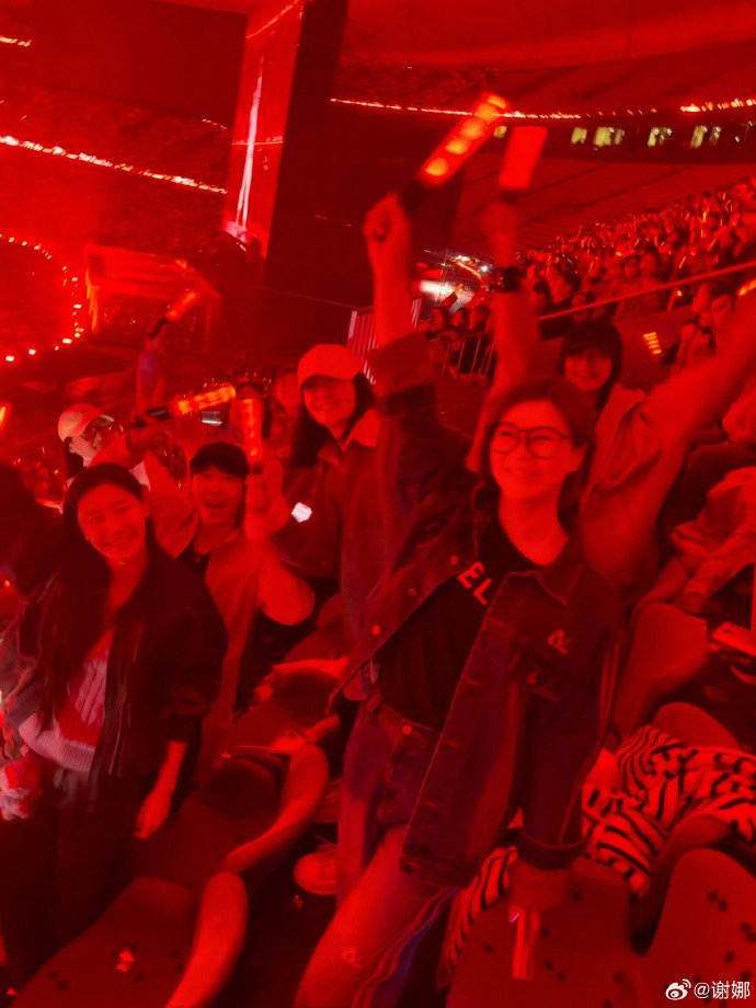 谢娜和奥运健儿看张杰演唱会 演唱会现场阵容太绝,谢娜与秦岚、杜华并肩看演出,奥运健儿们也齐聚一堂,氛围感拉满。