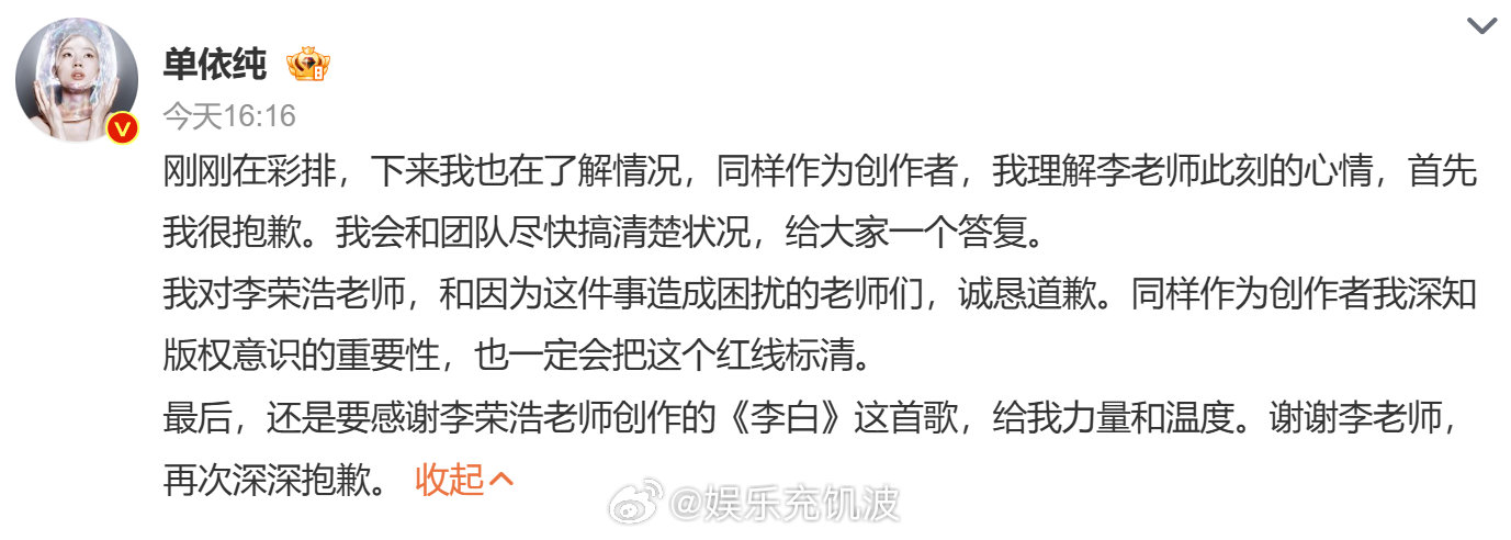 单依纯演唱会歌单删了李白就算改了歌单,也依旧相信单依纯的舞台实力单依纯演唱会换歌李荣浩4连质问单依纯