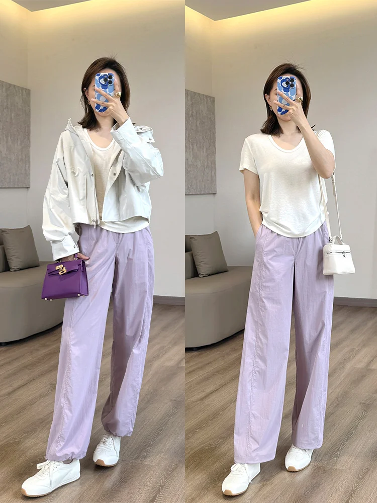 🔥小个子天菜机能休闲裤!面料一绝 透气舒适 有型 ~ 是我超爱的休闲风 贼拉好看😎配色喜欢,裤型喜欢 不错哦~ 158小个子穿搭 梨形身材穿搭 春夏穿搭 紫色系穿搭 休闲裤穿搭 机能裤 紫色裤子穿搭 舒适透气 遮肉显瘦 小个子穿搭