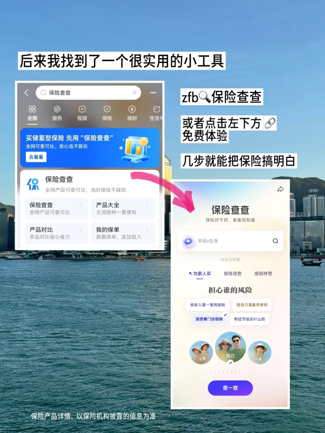 后来我找到了一个很实用的小工具,zfb里“保险查查”,几步就能把保险搞明白。而且还是免费的!