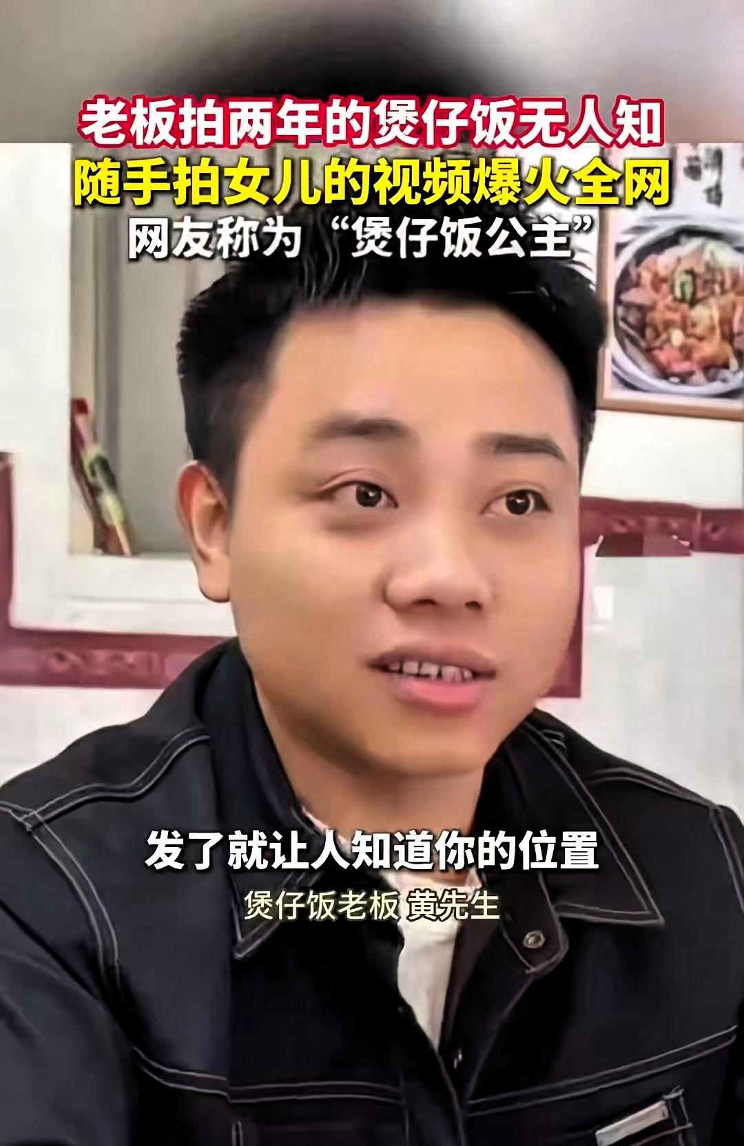 太意外了!广东揭阳,一名煲仔饭店老板,2年来天天守着饭店拍视频却没有流量。谁知,1条4岁女儿生日视频,48小时2100多万 这位店主经营着一家普通的煲仔饭店,两年来一直坚持拍摄短视频,记录店里的日常和煲仔饭的制作过程。从焖饭到出锅,每一个步骤都认真拍摄,前后发布了上百条视频,可一直没什么流量,店铺生意也比较平常。他没有因此气馁,依旧每天守在店里,认真做好每一份餐食,过着平凡踏实的小日子。 女儿四岁生日那天,他随手拍下孩子戴着头纱、天真可爱的样子,没有特意布景,也没有设计台词,只是简单记录下孩子成长的瞬间。发布之后他也没多想,就继续回到店里忙活。 没想到这条视频在48小时内播放量超过2100万,引来大量网友关注,大家还亲切地称小女孩为“煲仔饭公主”。不少网友顺着视频找到这家小店,专程来品尝煲仔饭,店里的人气也慢慢好了起来。 其实生活里很多美好都不是刻意追求来的,比起精心包装的内容,普通人真实的生活状态和温暖的亲情,更容易让人产生共鸣。店主用心经营小店,用心陪伴孩子,这份朴素的认真,最终换来了意想不到的收获。 很多时候我们急于求成,反而忽略了身边最珍贵的东西。认真生活、善待家人,踏踏实实做好眼前事,好运往往就会在不经意间出现。