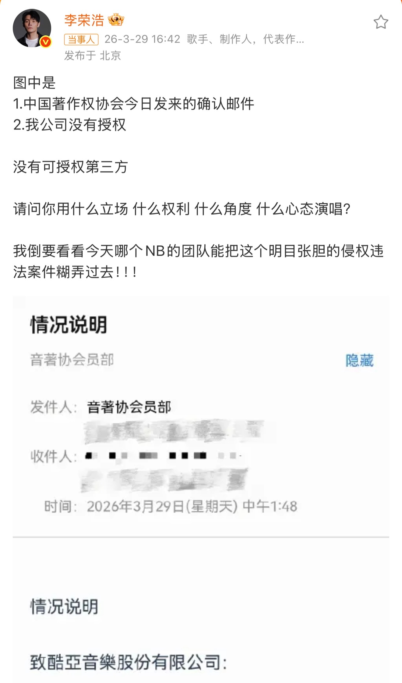 李荣浩4连质问单依纯