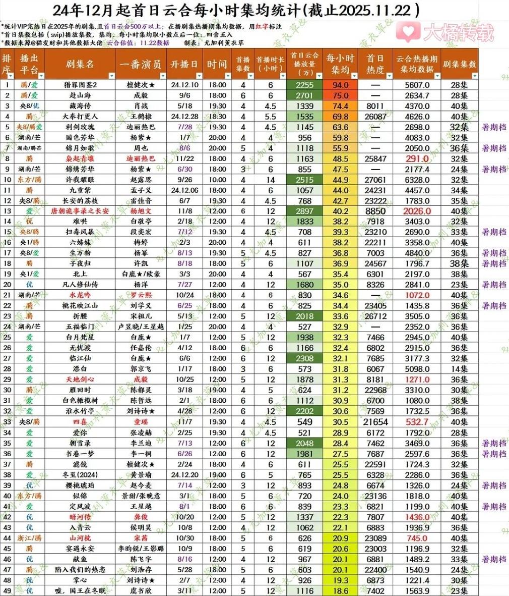 迪丽热巴《白日提灯》首日数据! 《白日提灯》首日热度26481,比《逐玉》低一点,暂列年度第二,云合占比7.8%,云合首日播放量1764万,算今年高开,但是首日播放不及去年的《折腰》,《赴山海》《书卷一梦》,《朝雪录》,《临江仙》,《唐诡》,《许我耀眼》,《淮水竹亭》等,首开数据只能说明主演的扛剧实力以及IP的吸引力,后面播的怎样还得看剧情和氛围,去年首开比较高的几部,最后集均没到3000万也好几部。